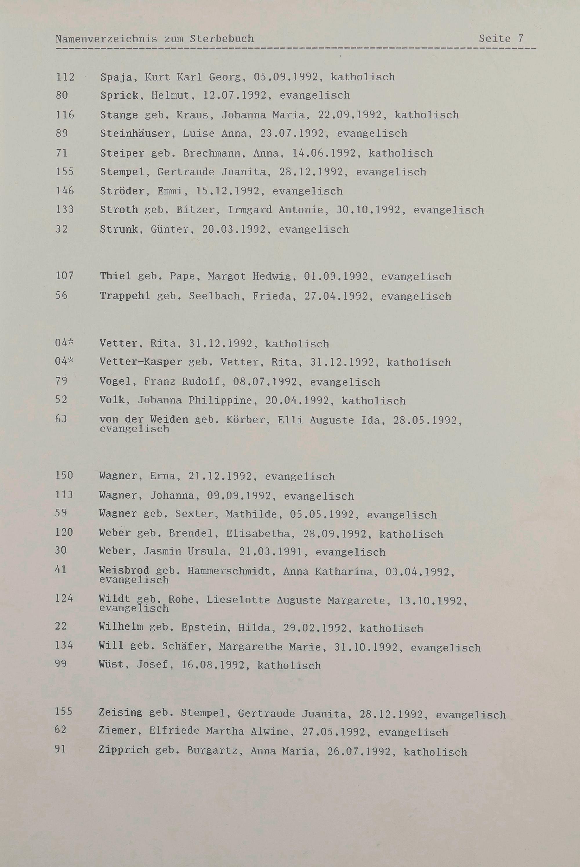 Sterberegister 1992