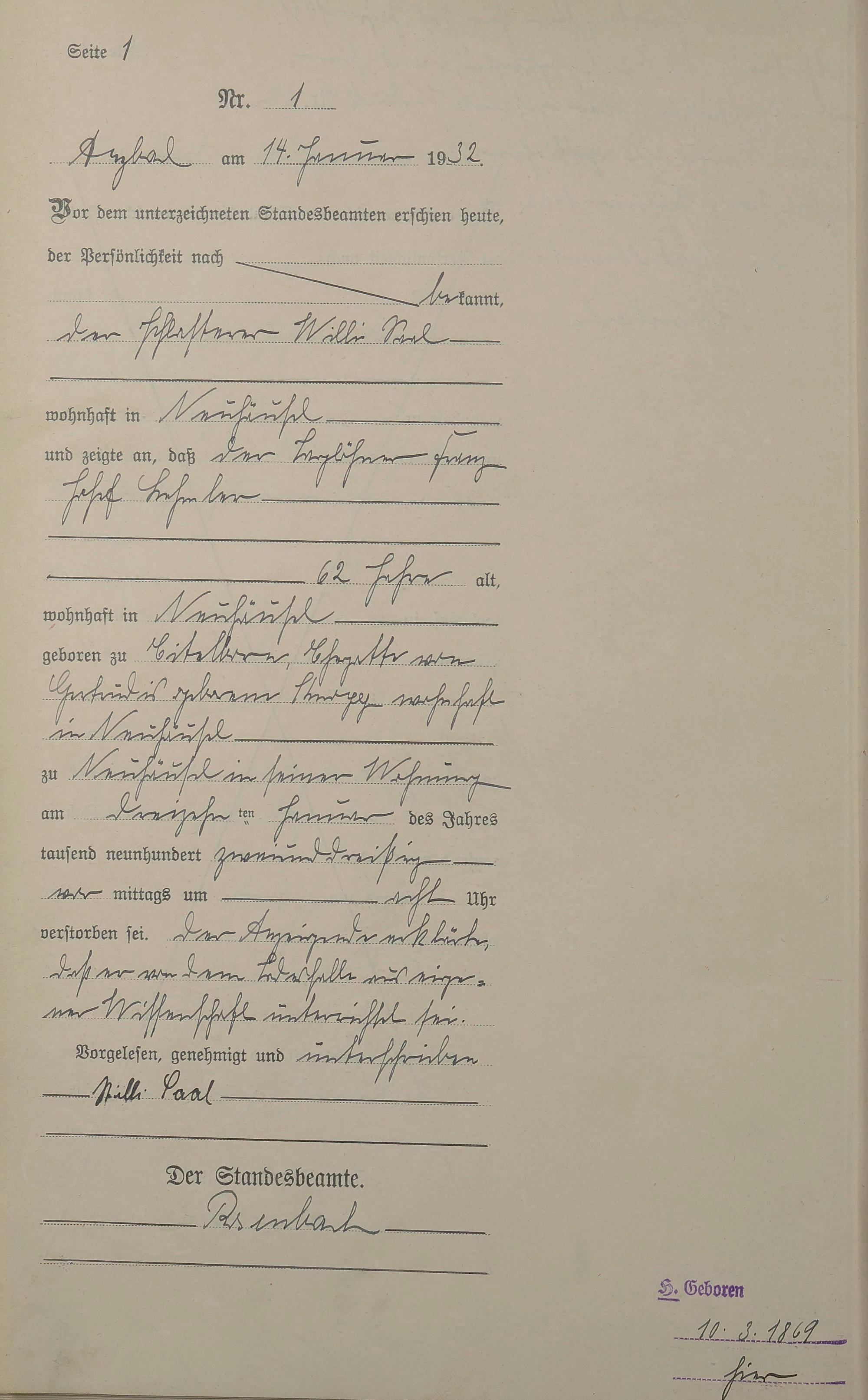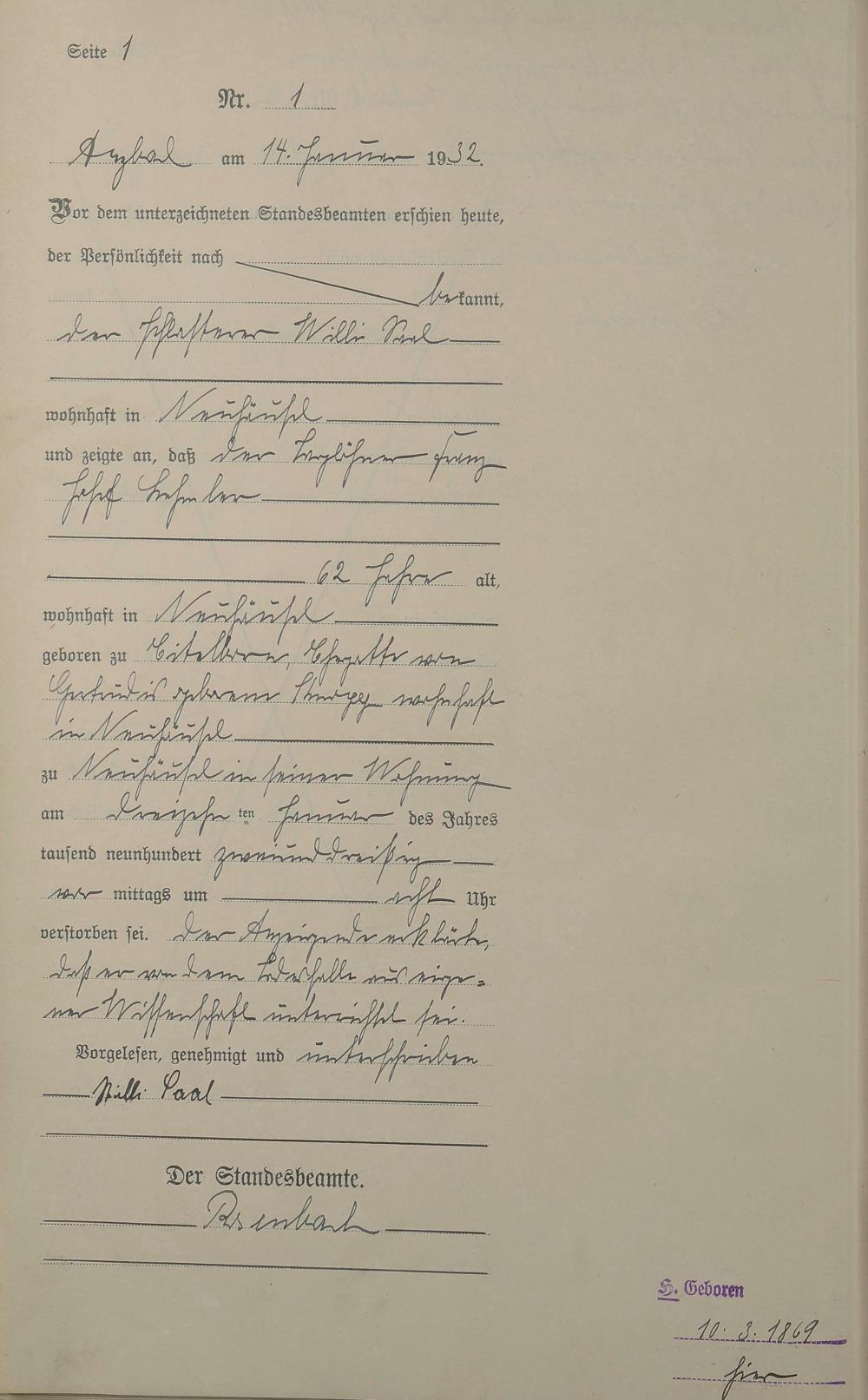 Sterberegister 1932