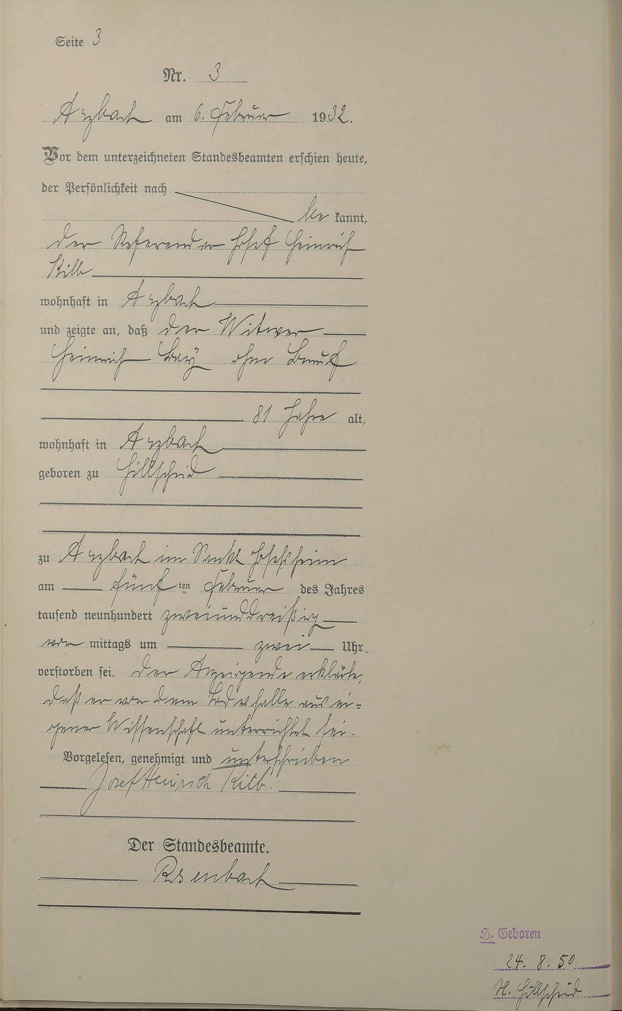 Sterberegister 1932
