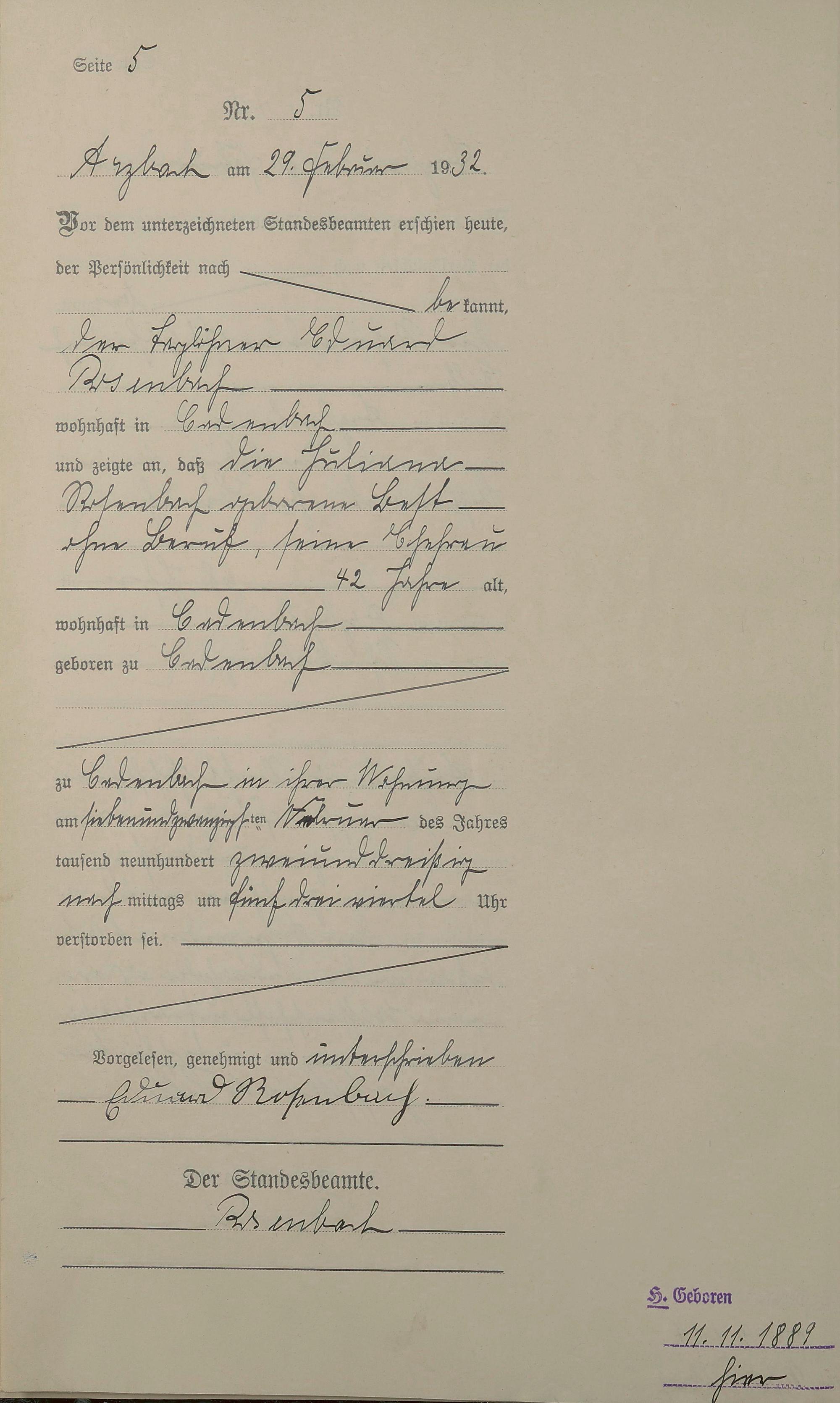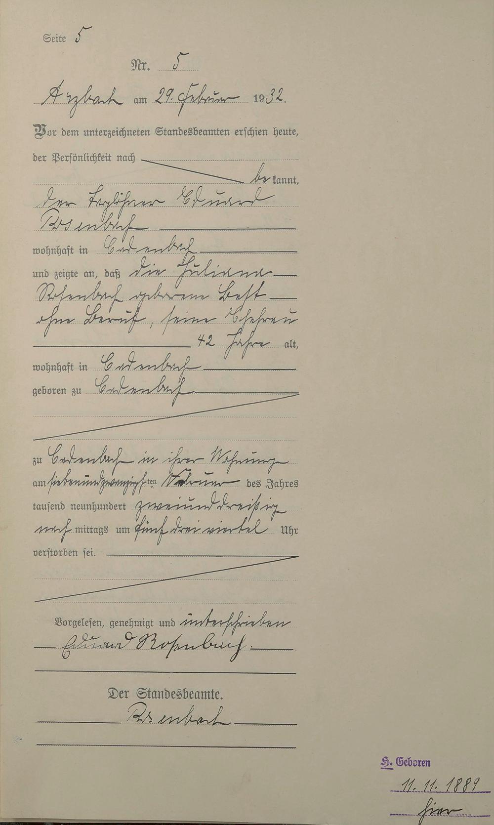 Sterberegister 1932
