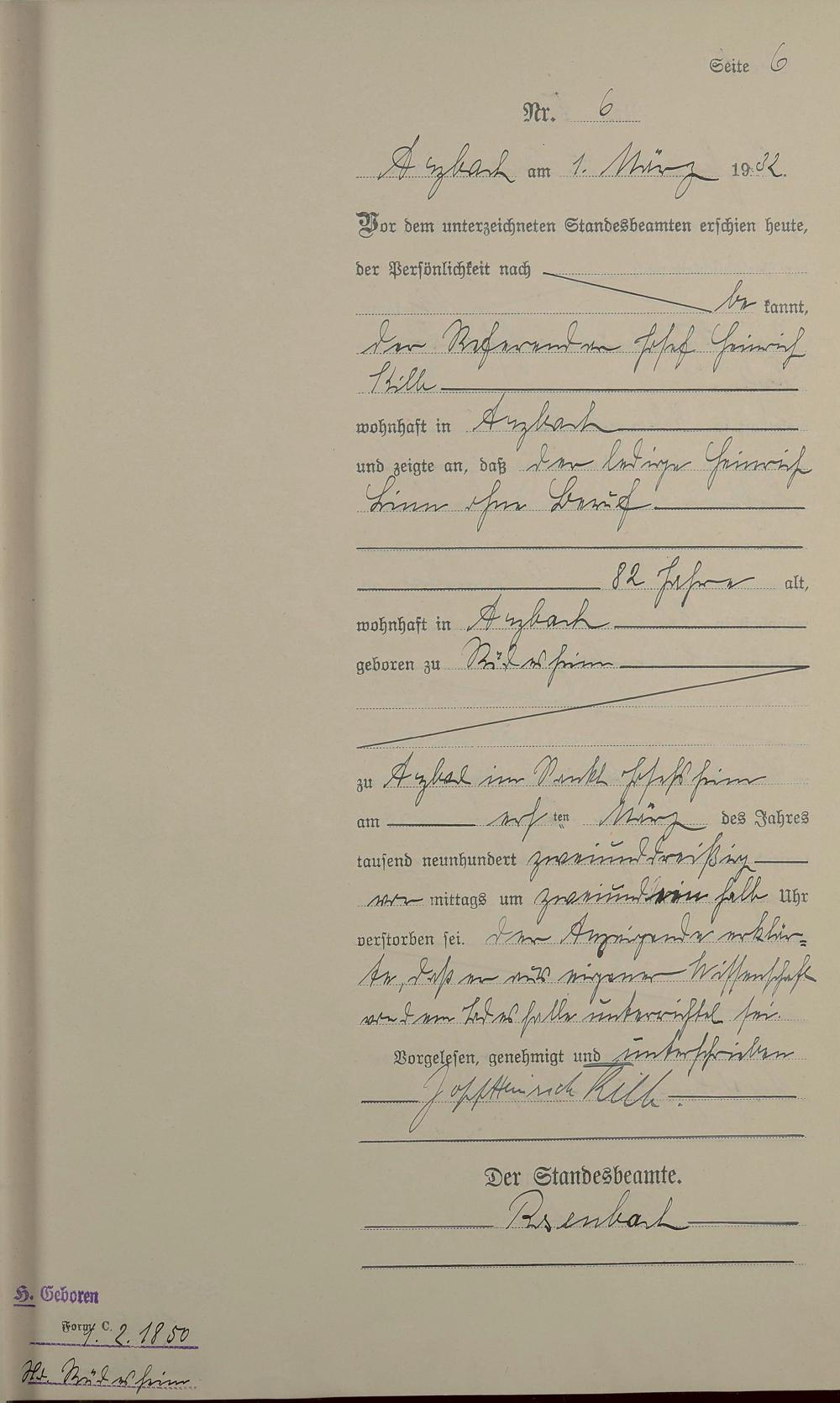 168/02: Sterberegister 1932