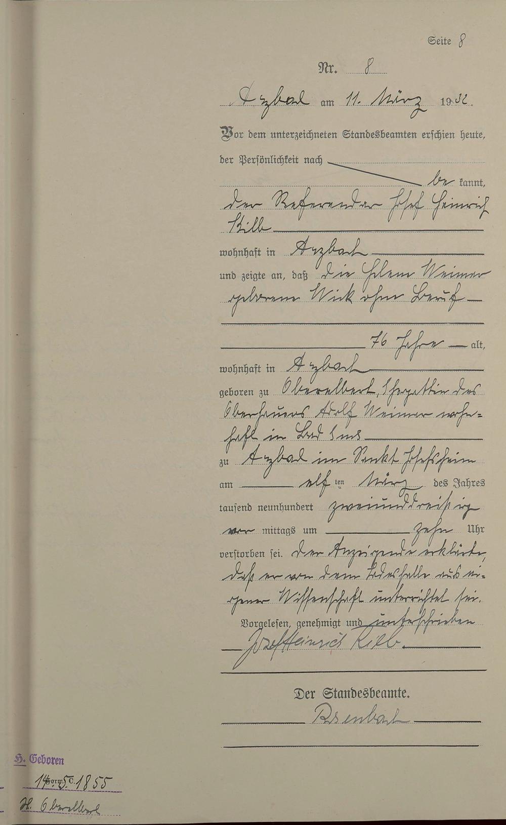 168/02: Sterberegister 1932