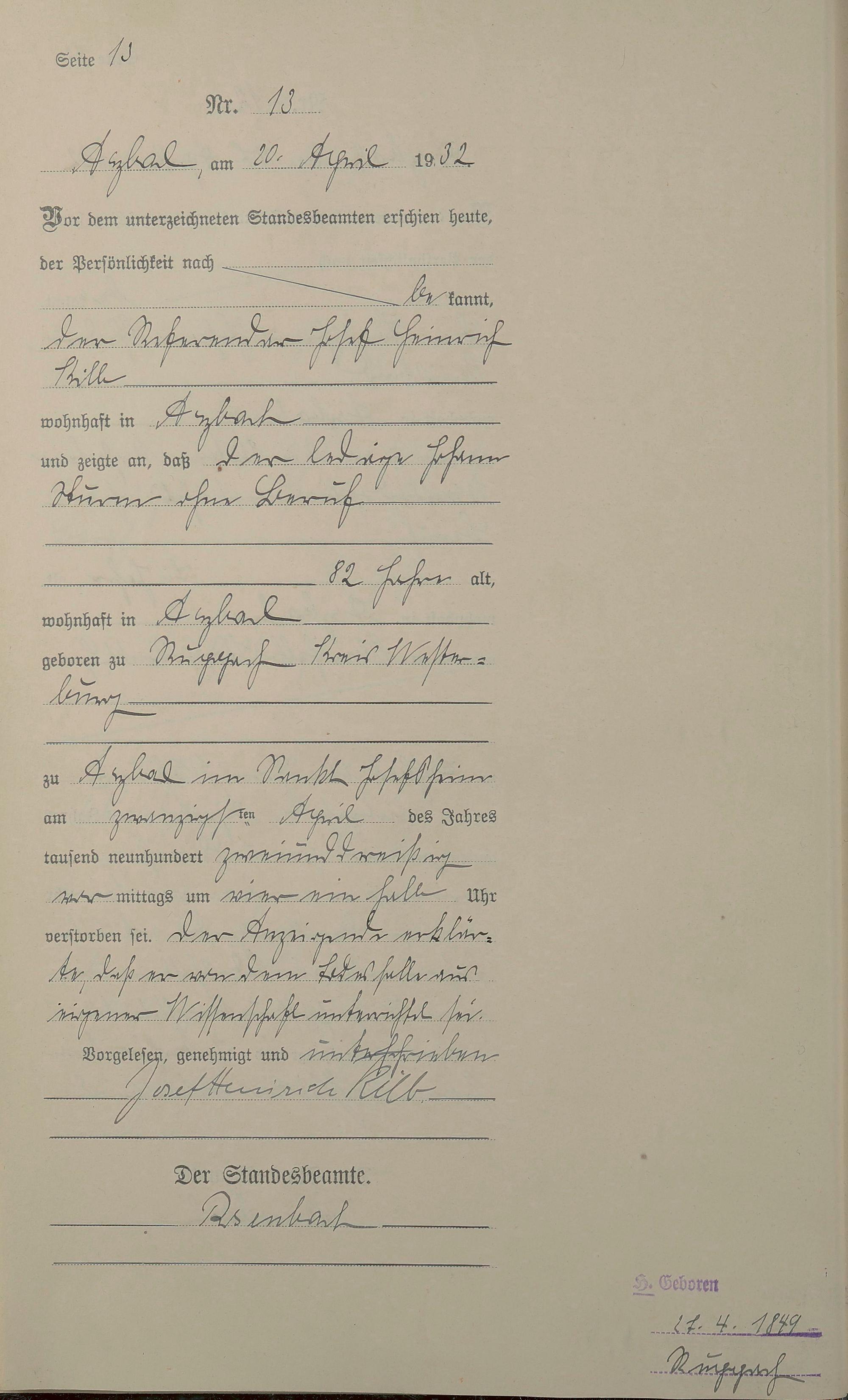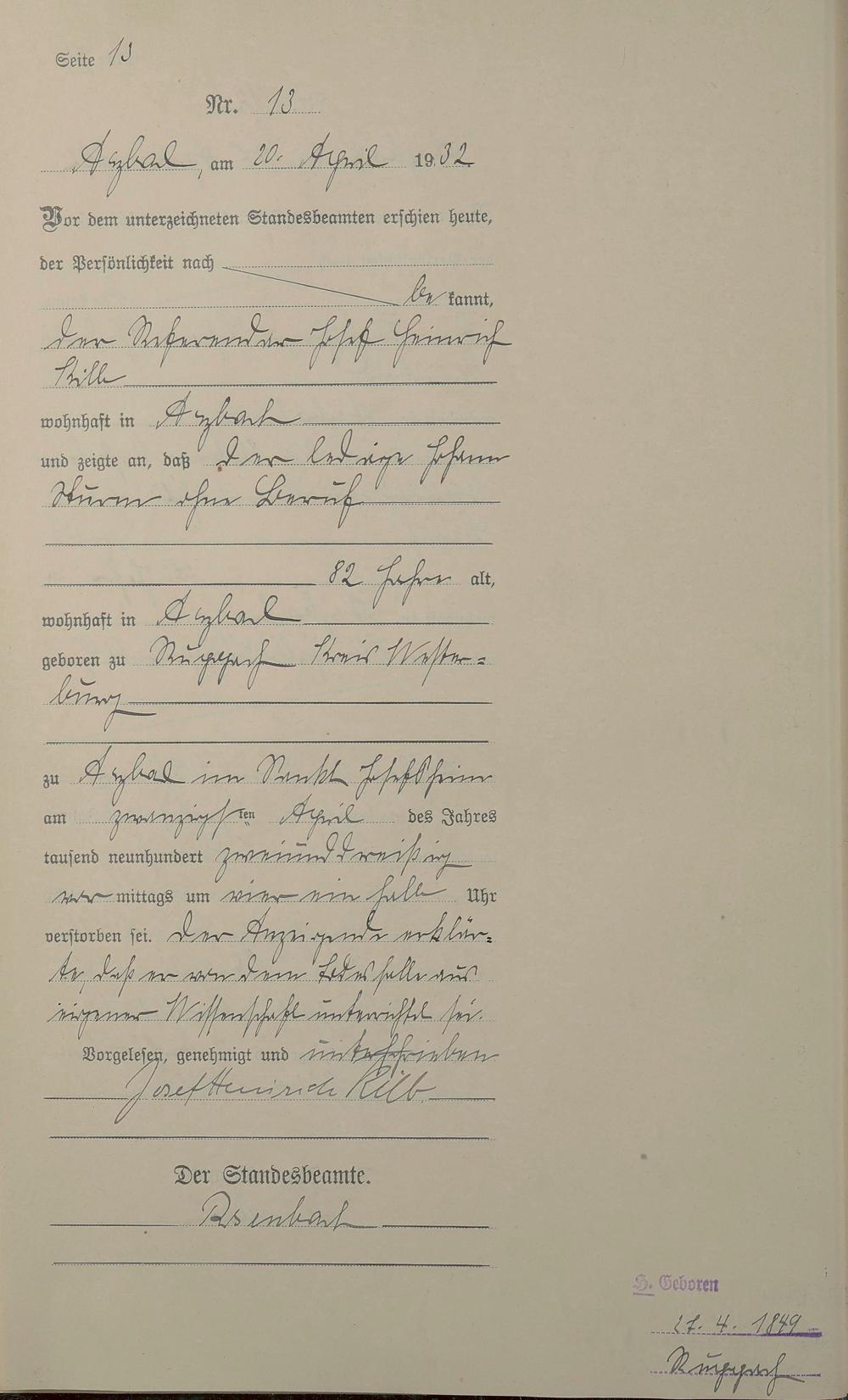 Sterberegister 1932