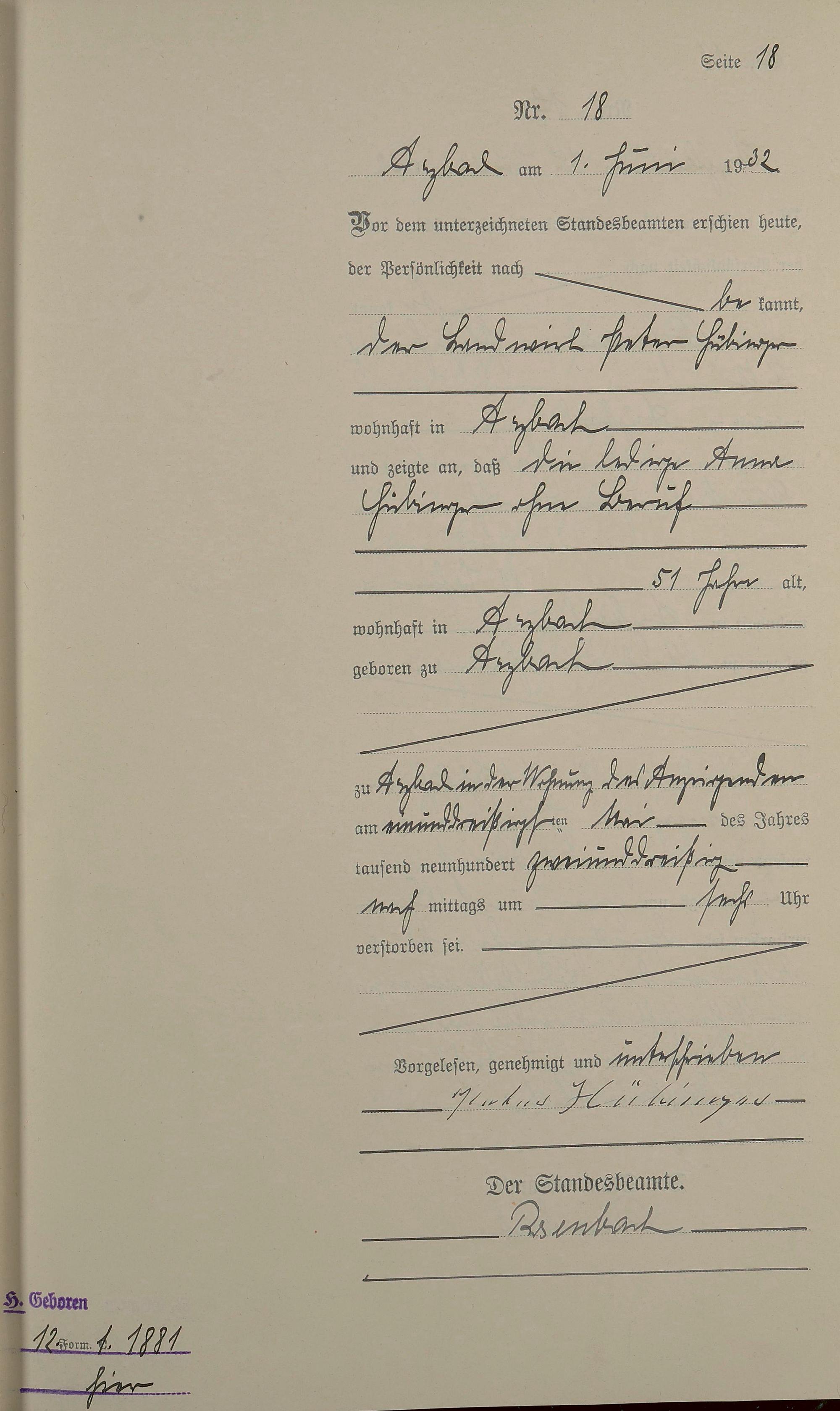 Sterberegister 1932