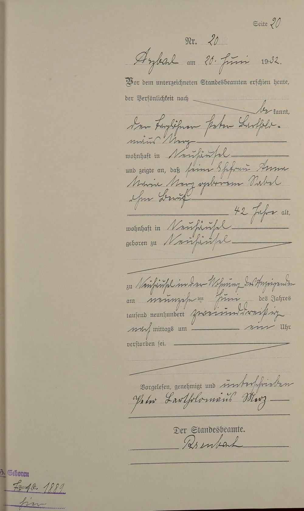 Sterberegister 1932