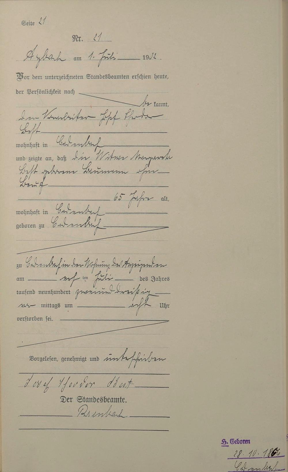 168/02: Sterberegister 1932