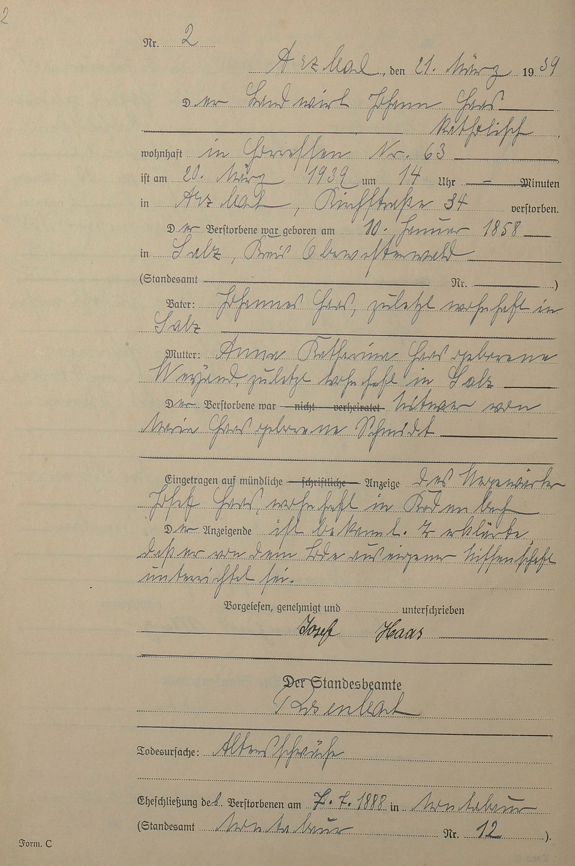 Sterberegister 1939