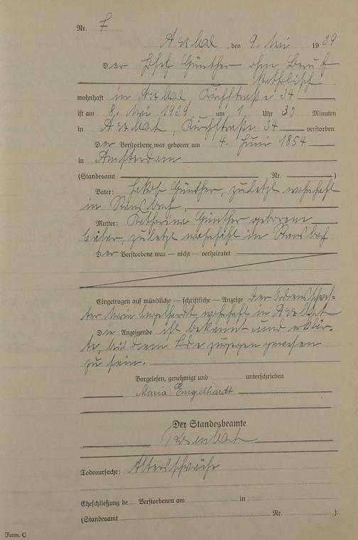 168/09: Sterberegister 1939
