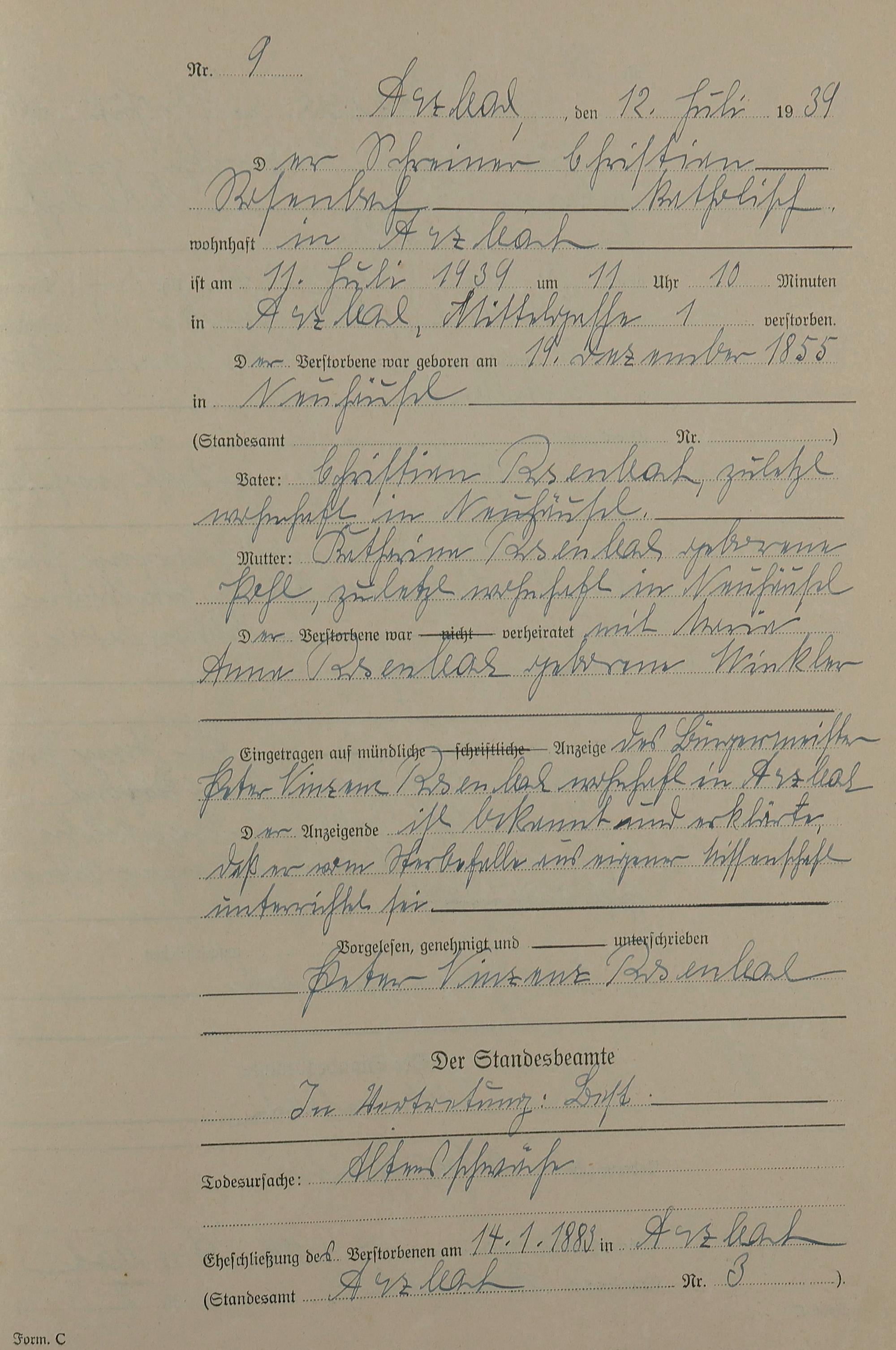 Sterberegister 1939