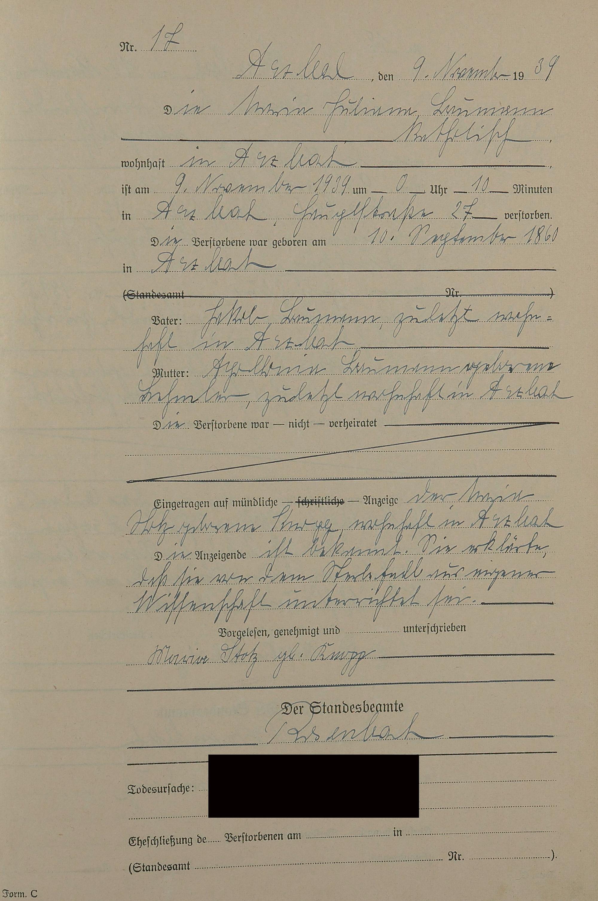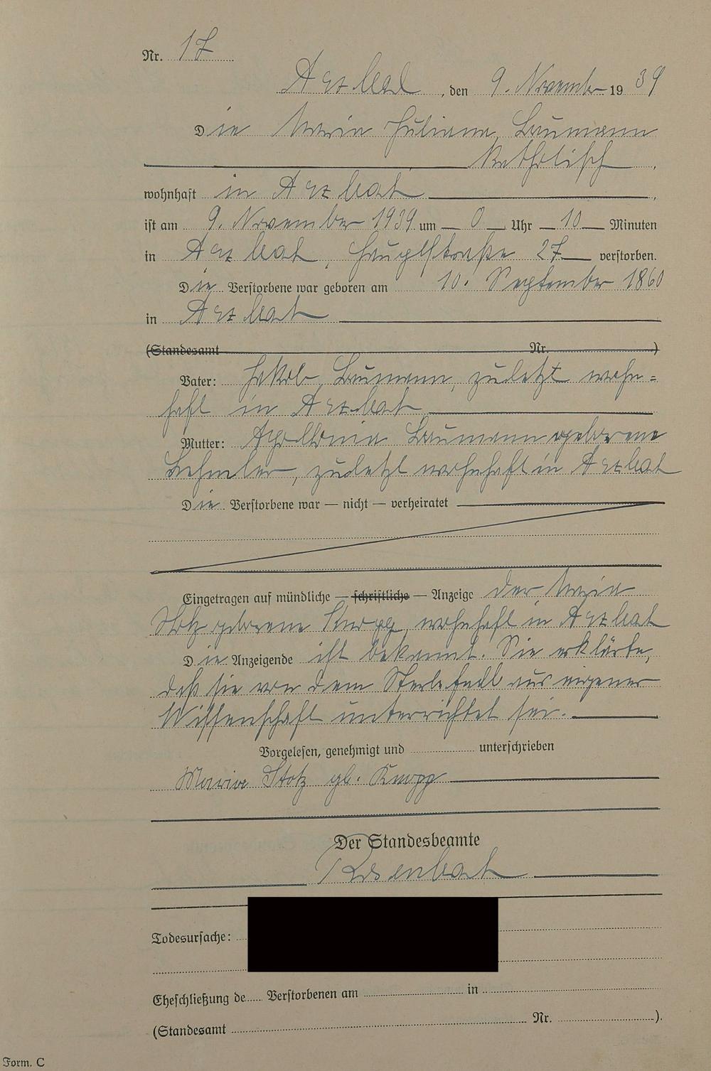 Sterberegister 1939