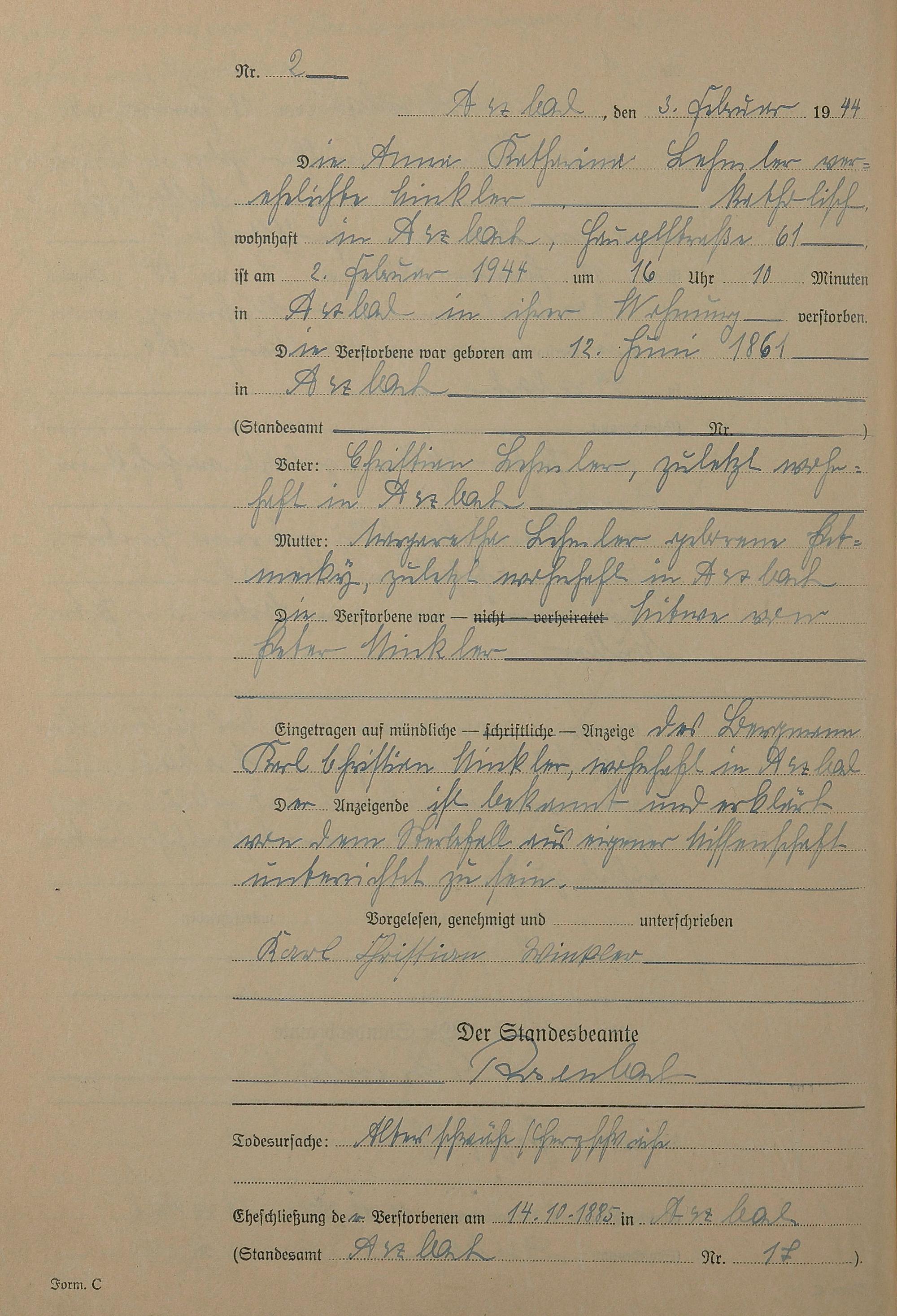 168/14: Sterberegister 1944