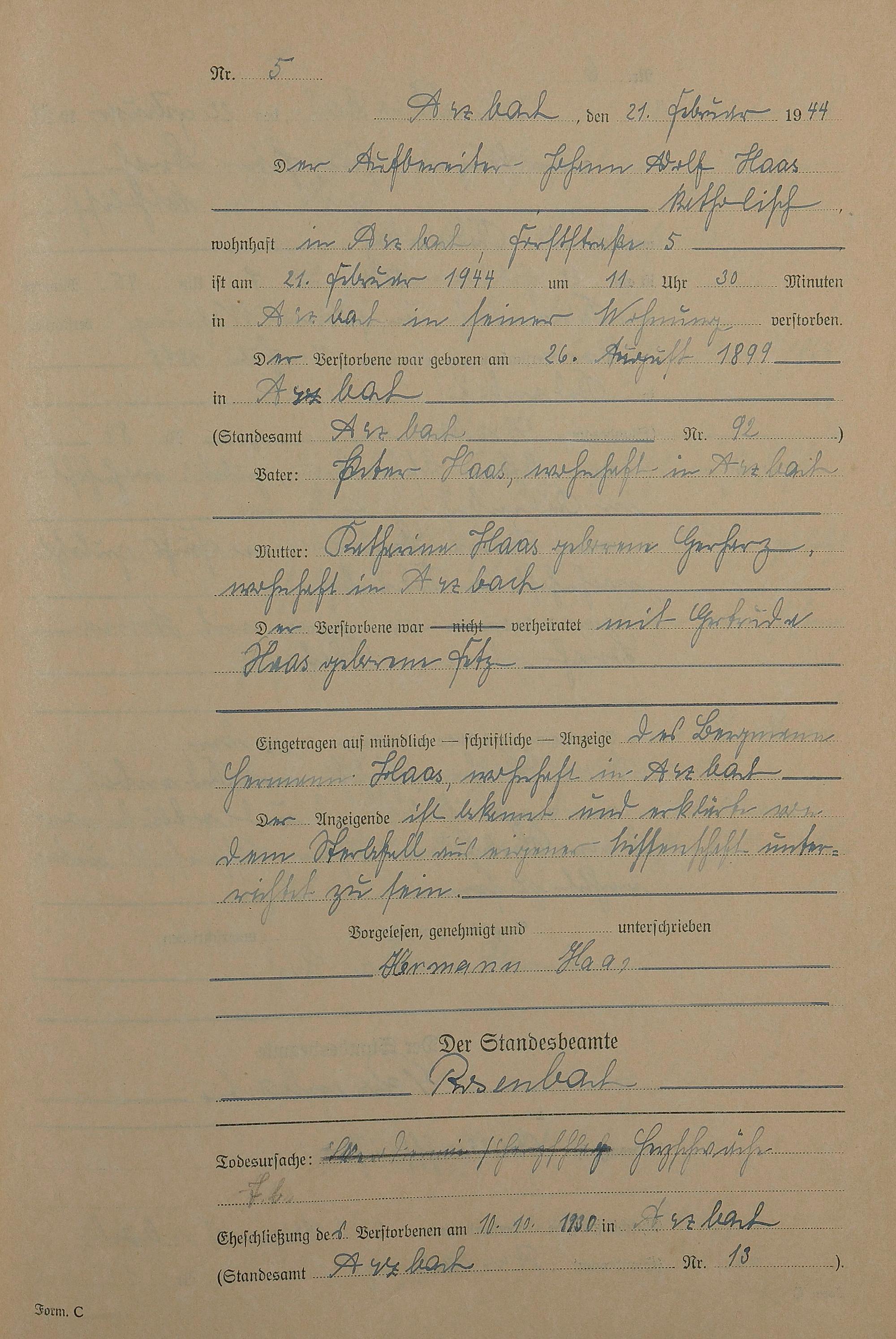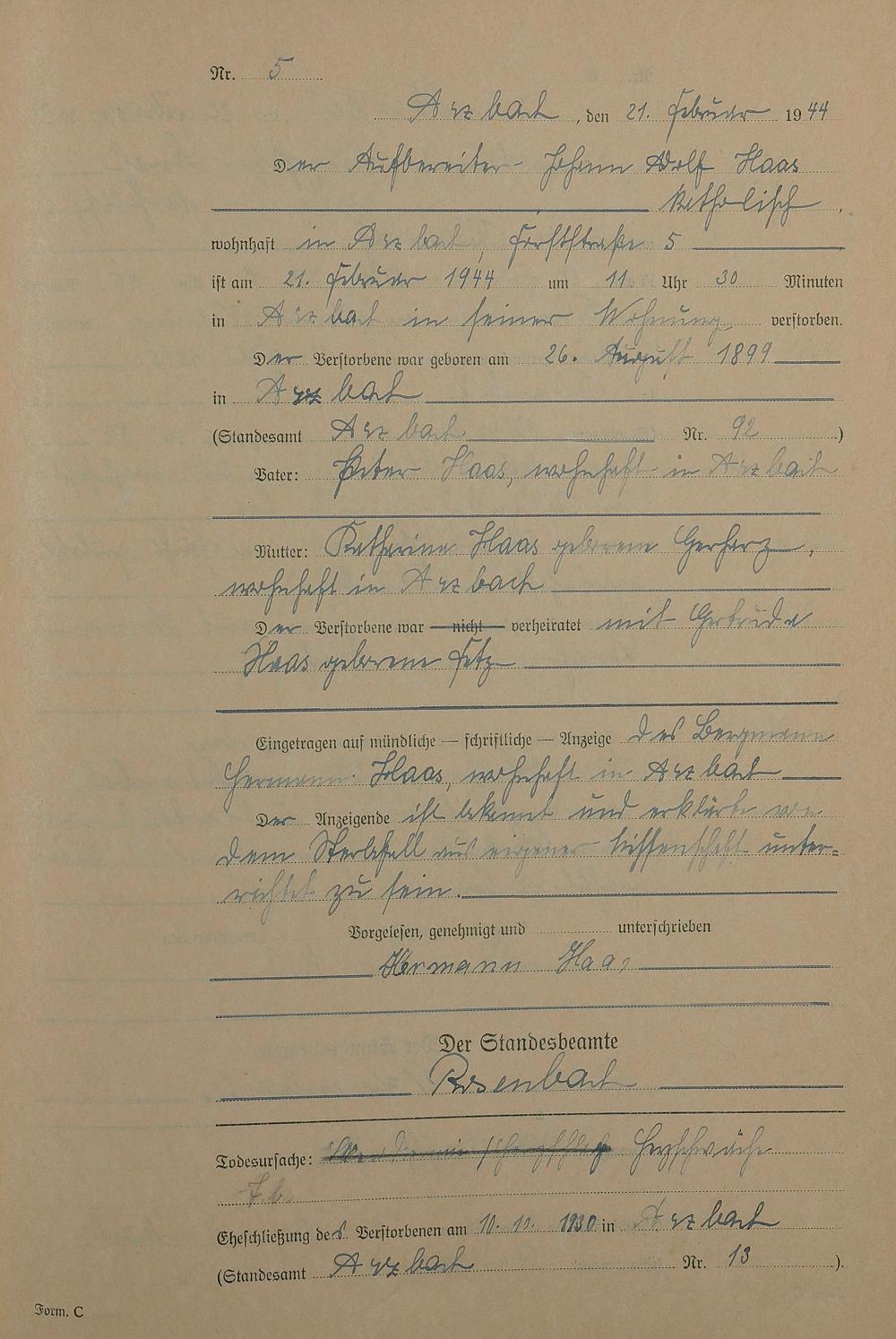 168/14: Sterberegister 1944