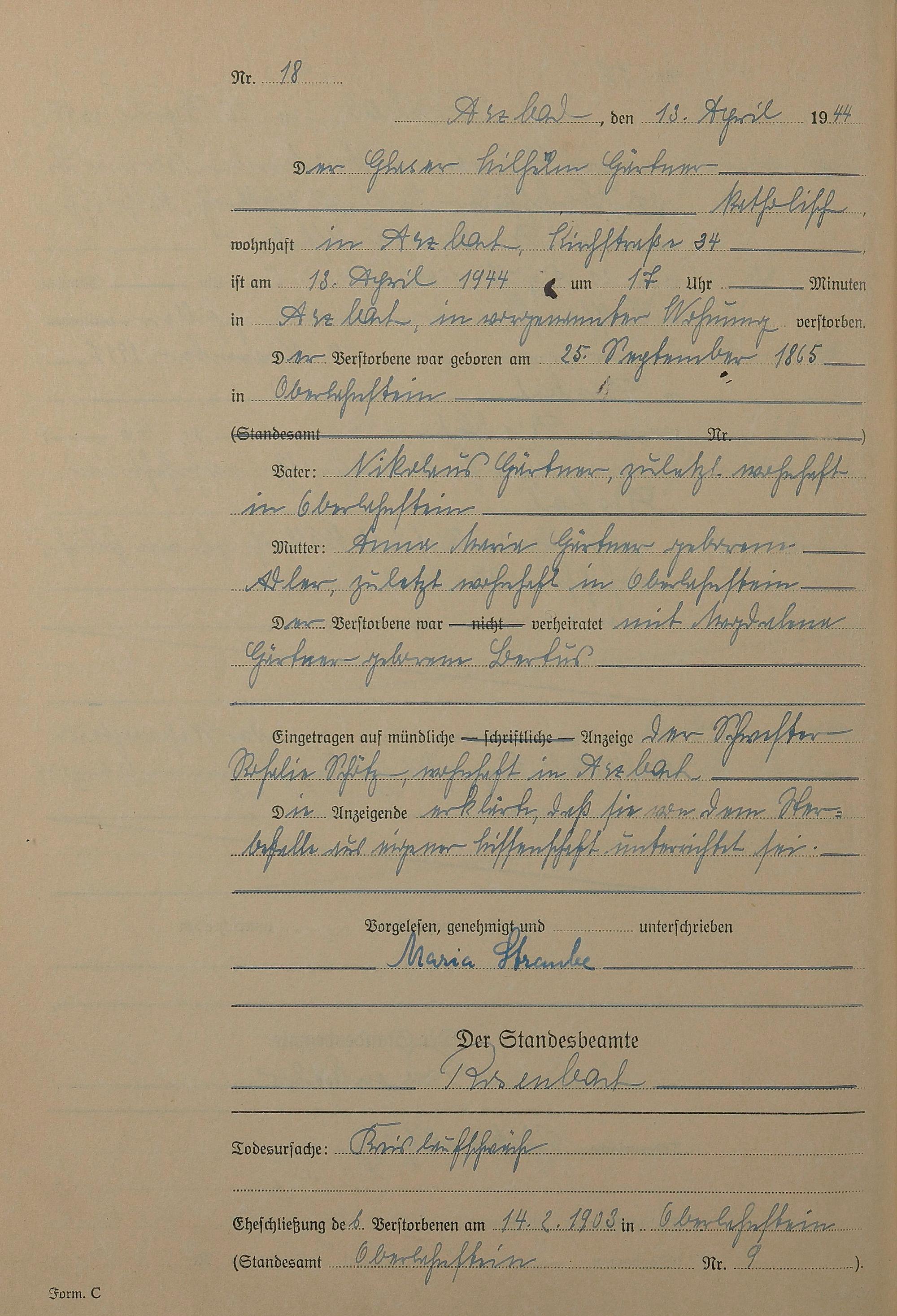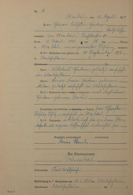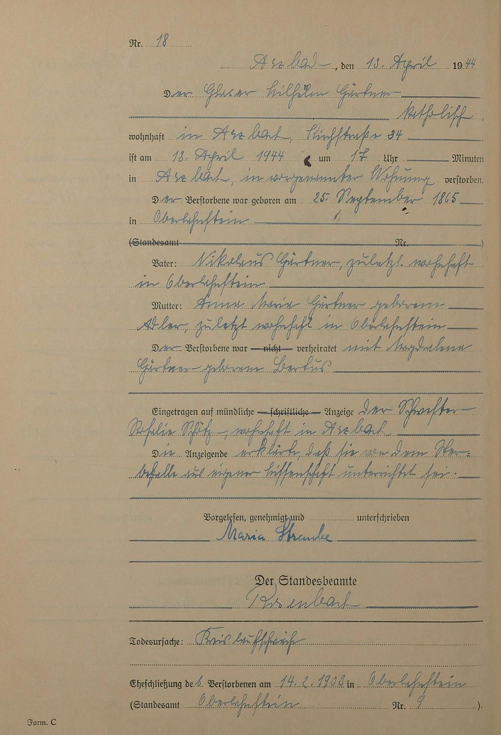 168/14: Sterberegister 1944