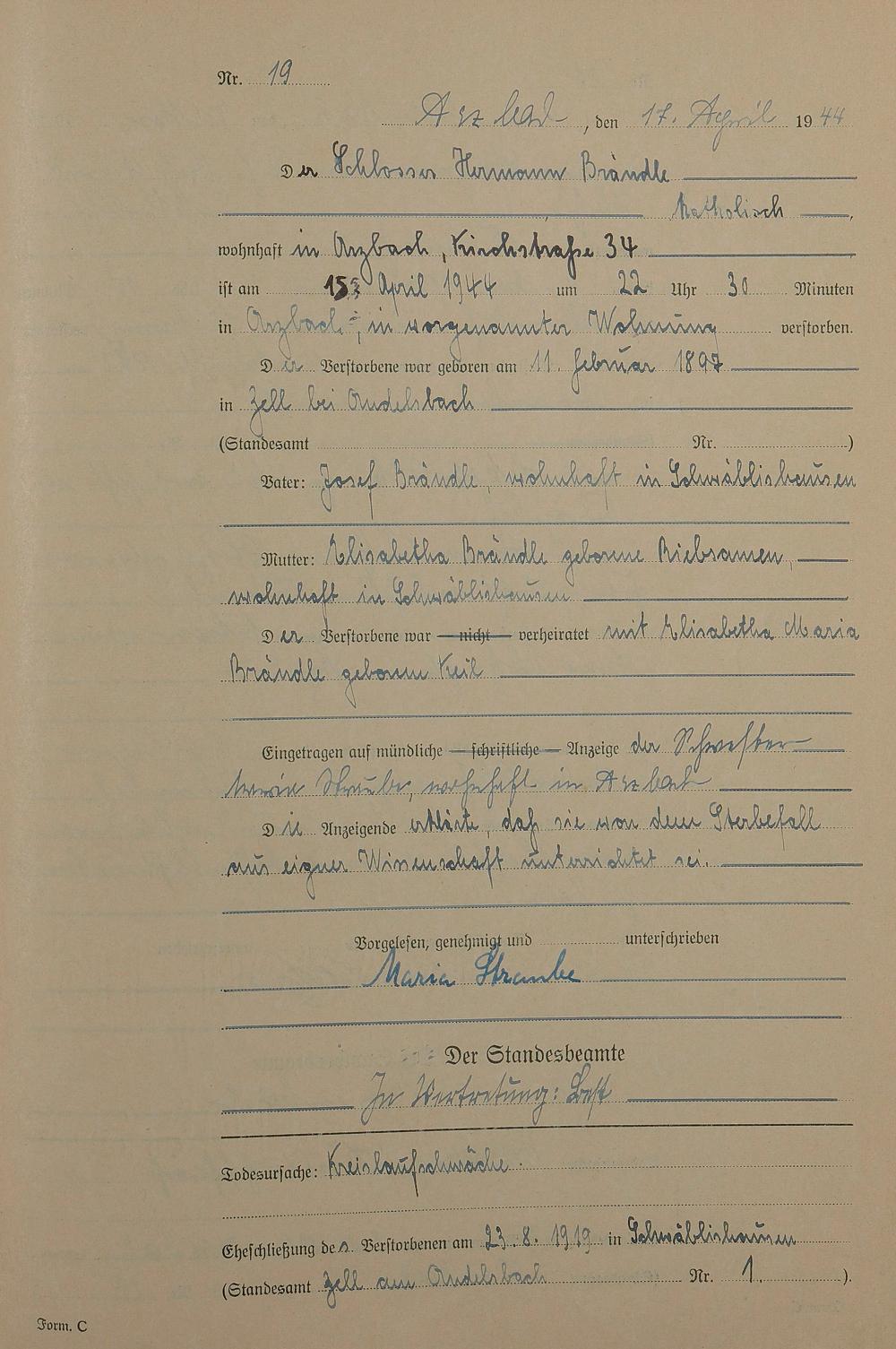 168/14: Sterberegister 1944