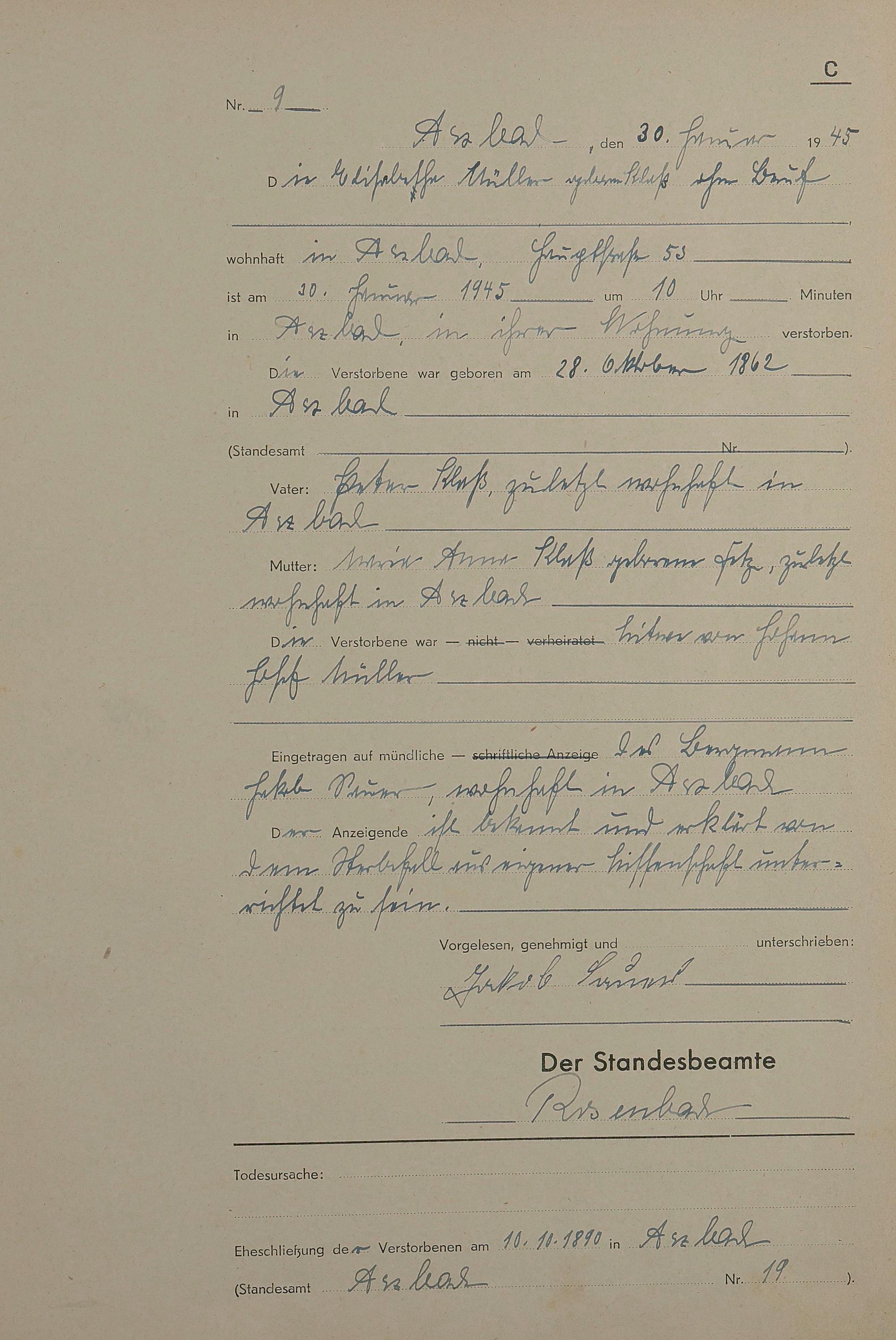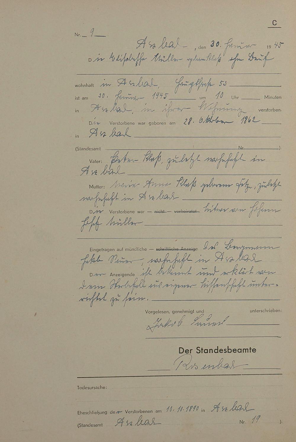 Sterberegister 1945