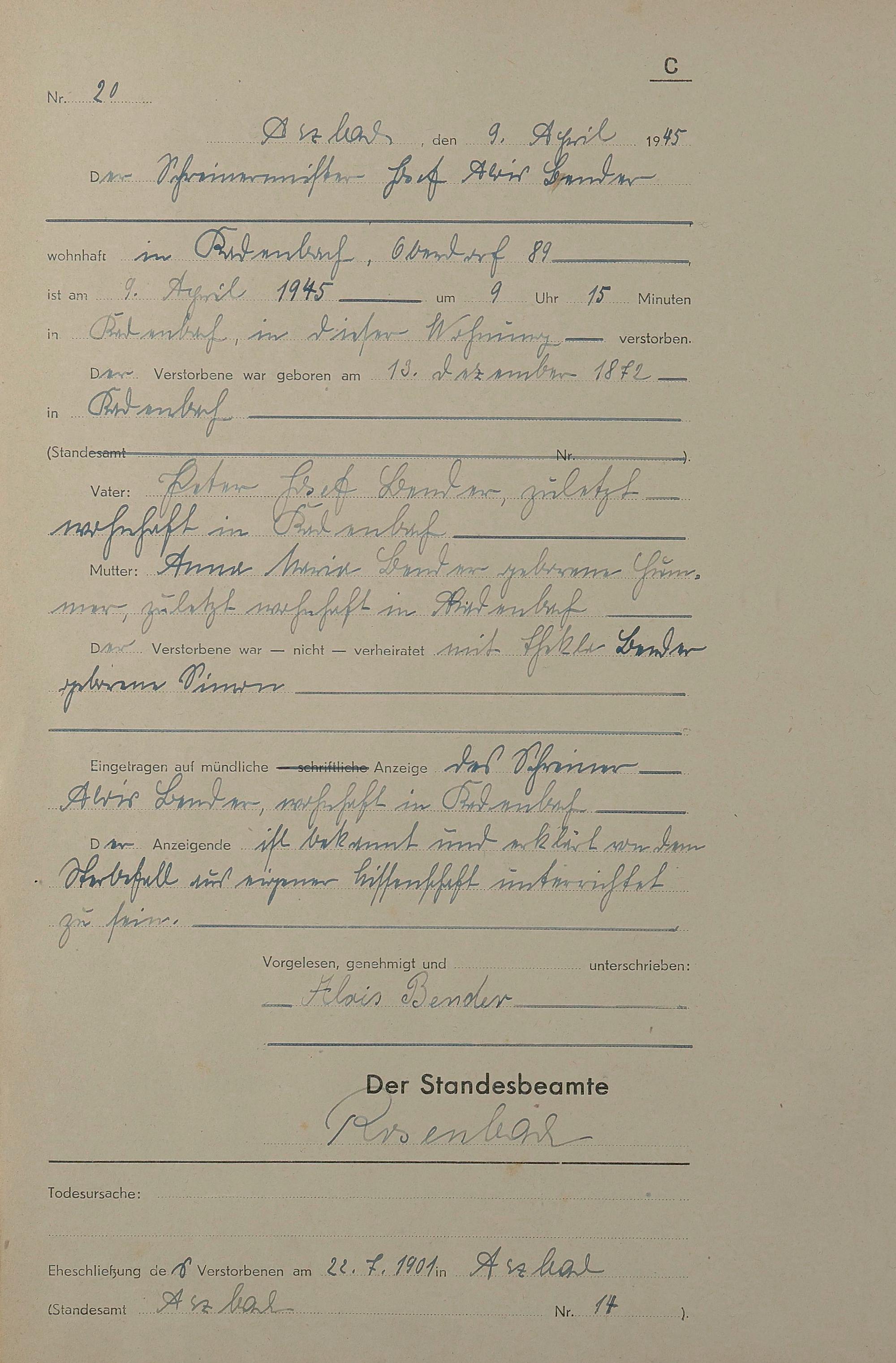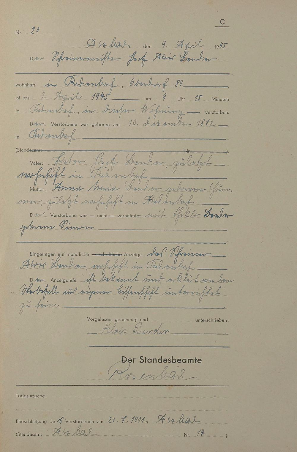Sterberegister 1945