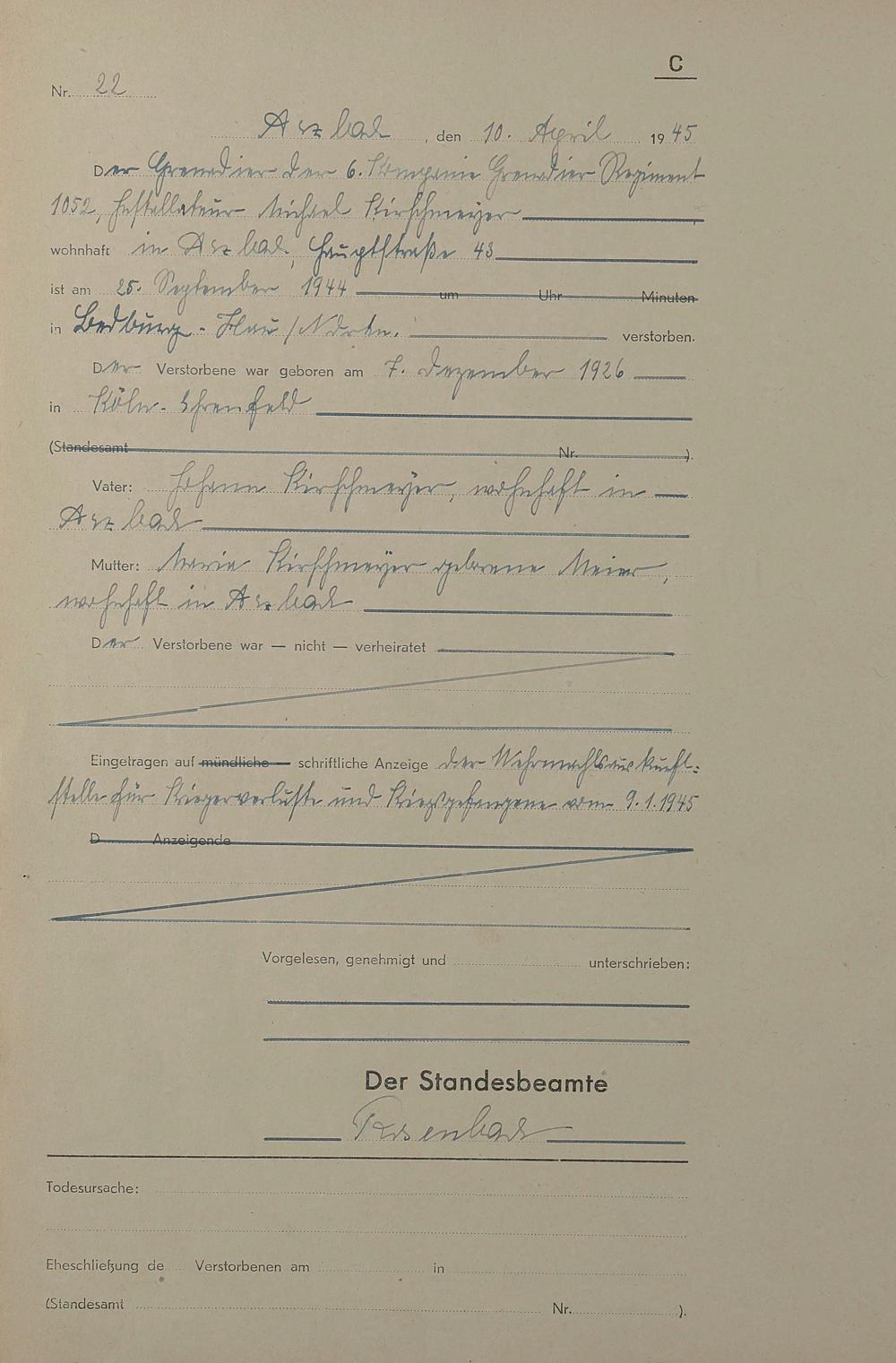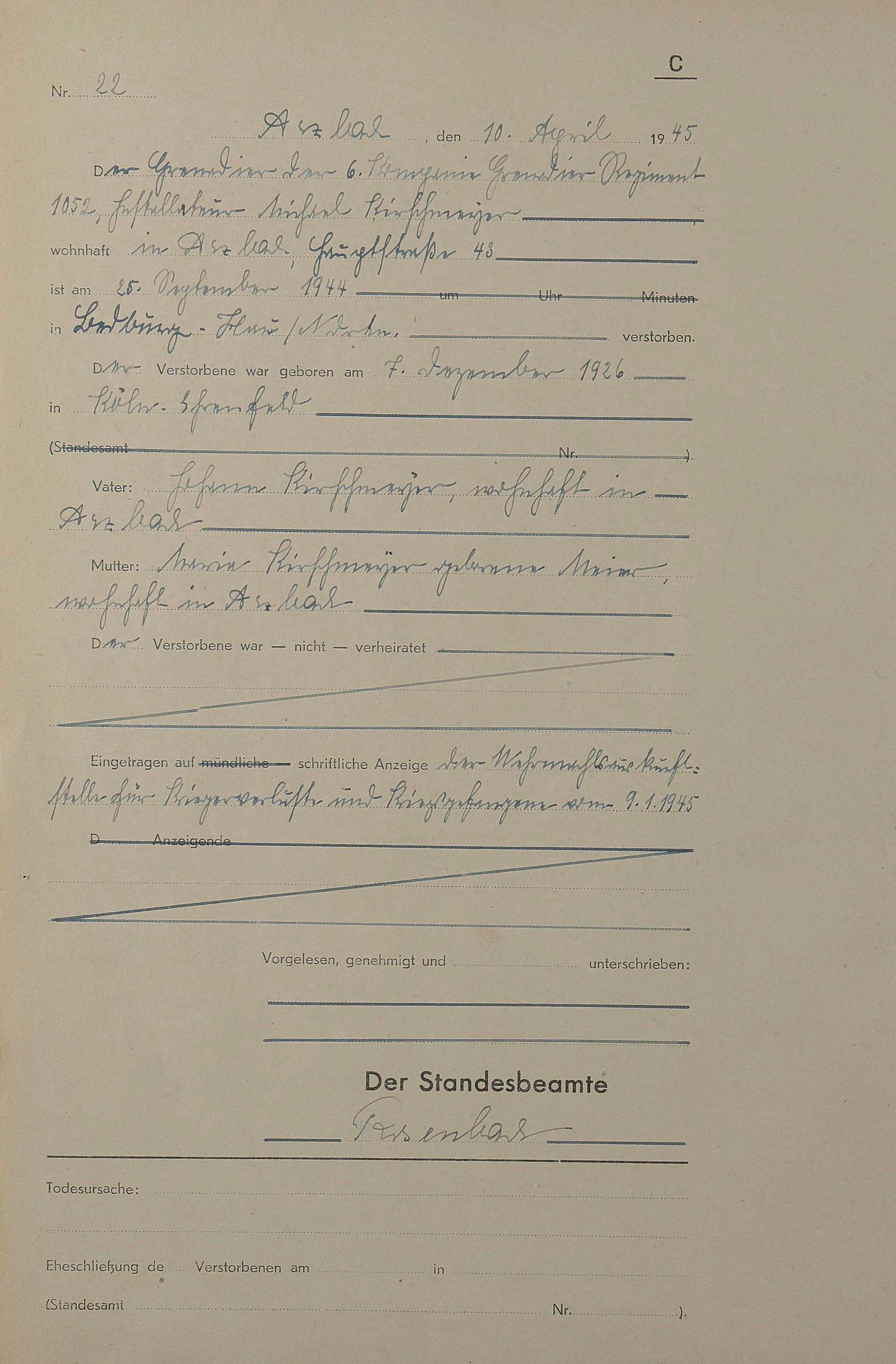 Sterberegister 1945