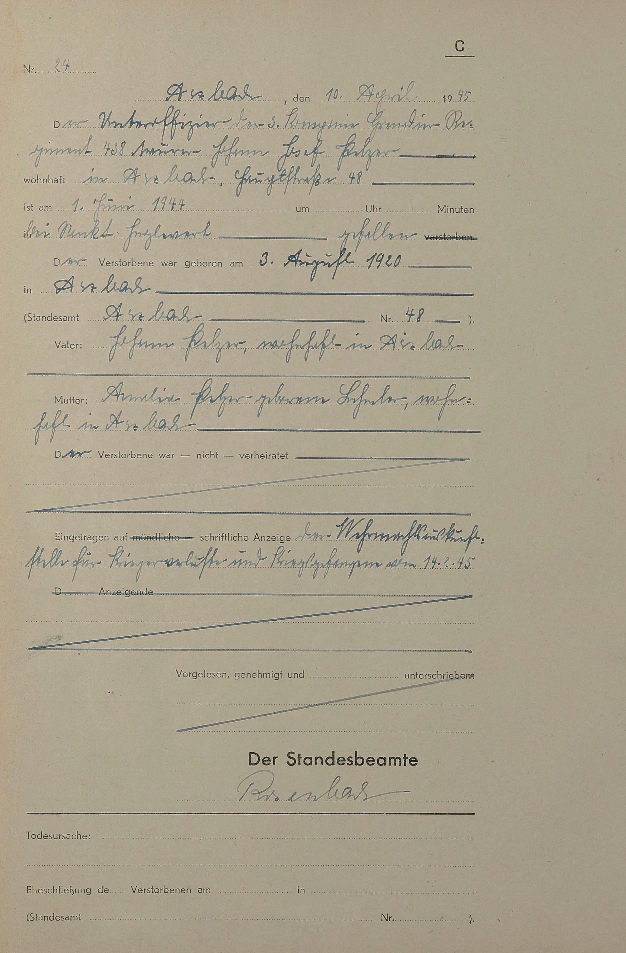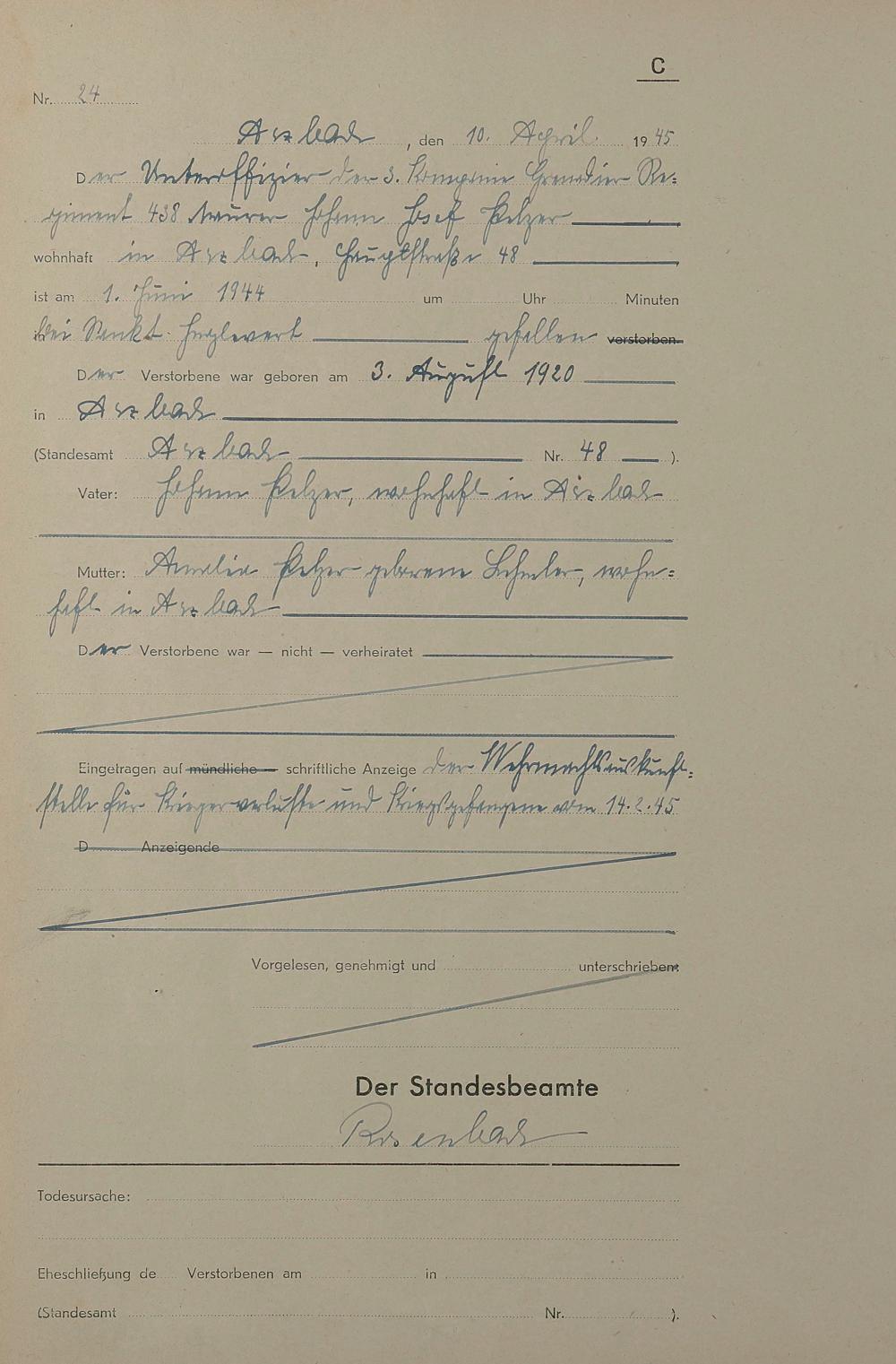 Sterberegister 1945