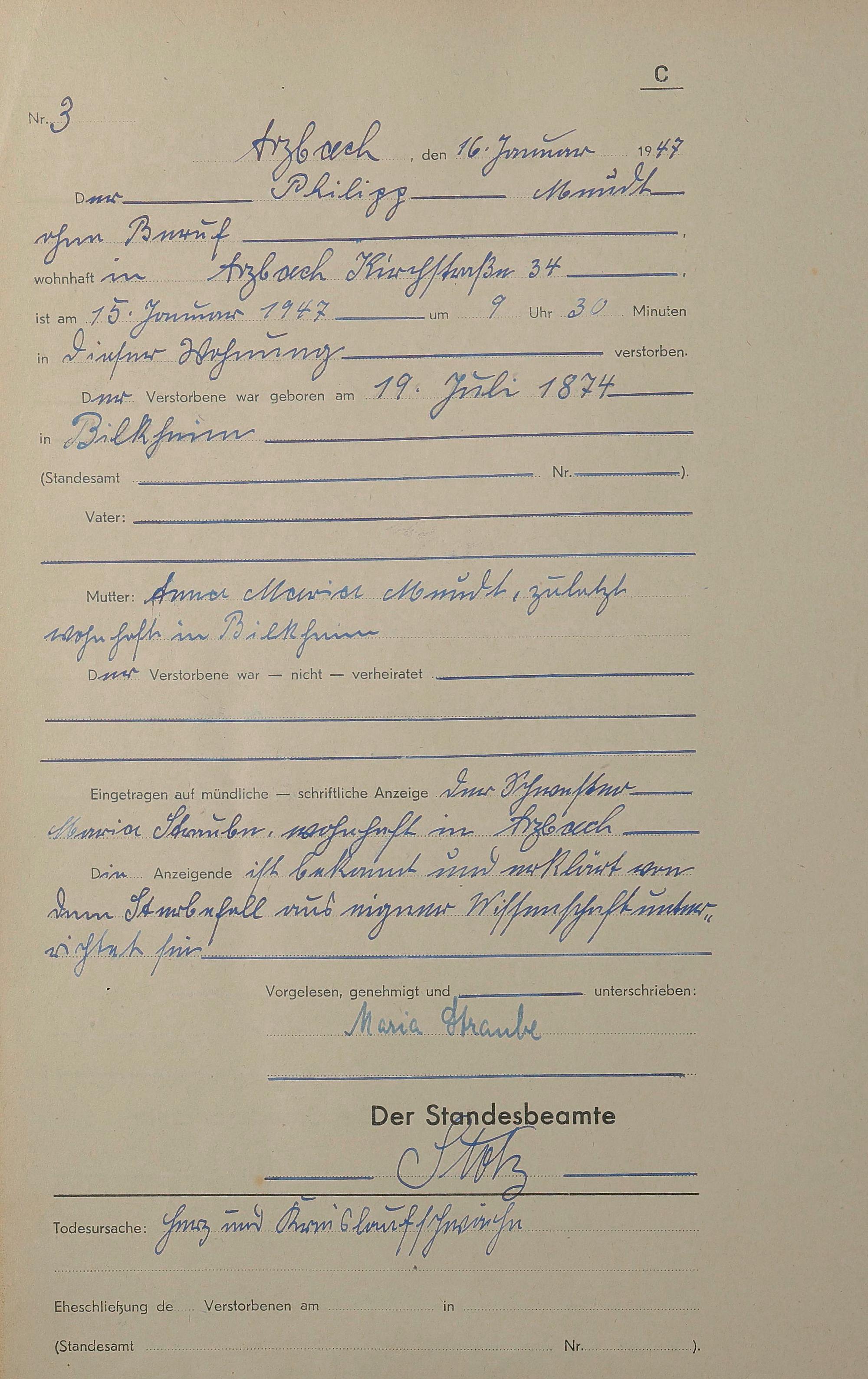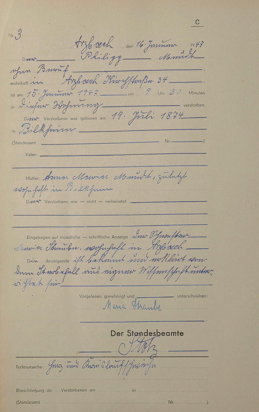 Sterberegister 1947