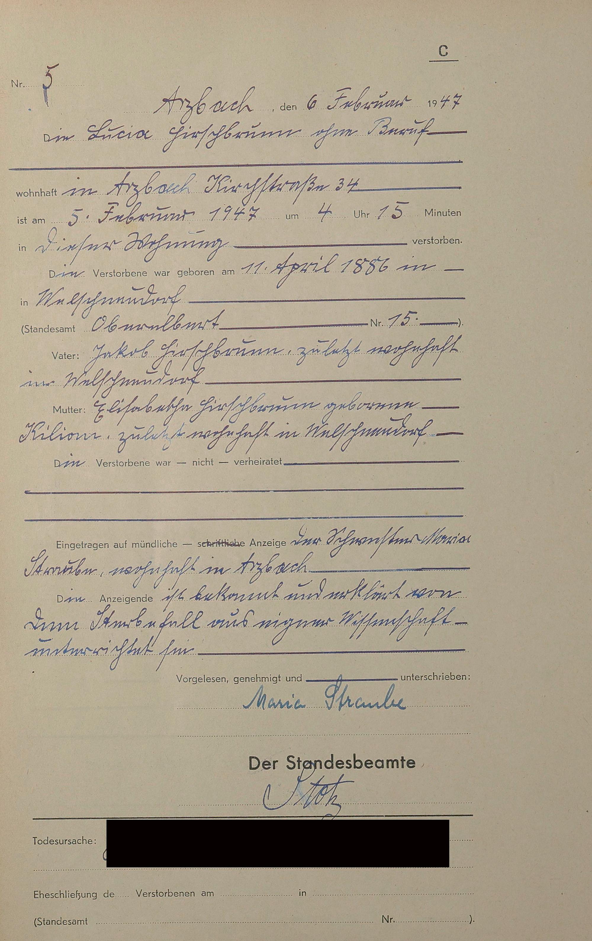 Sterberegister 1947
