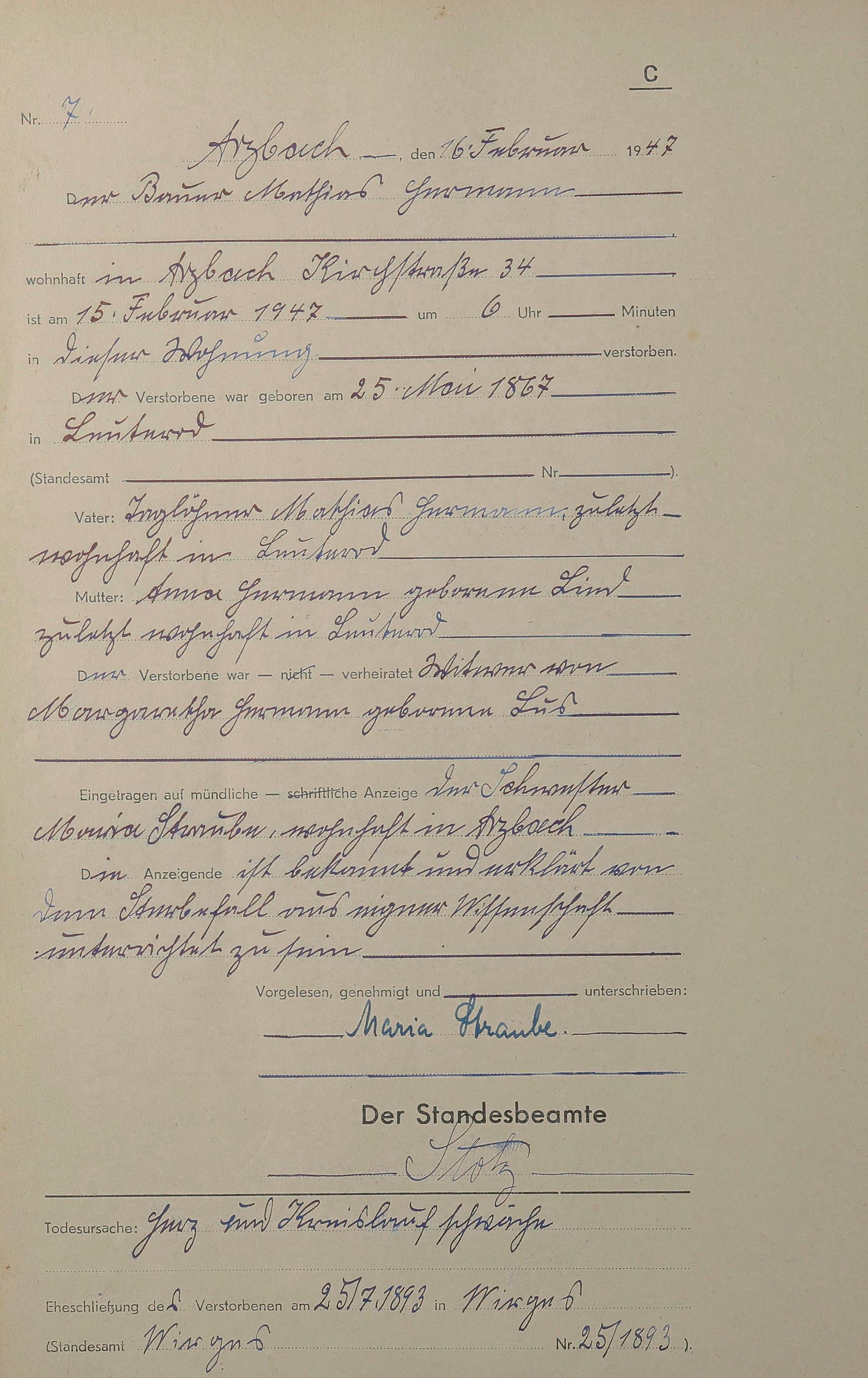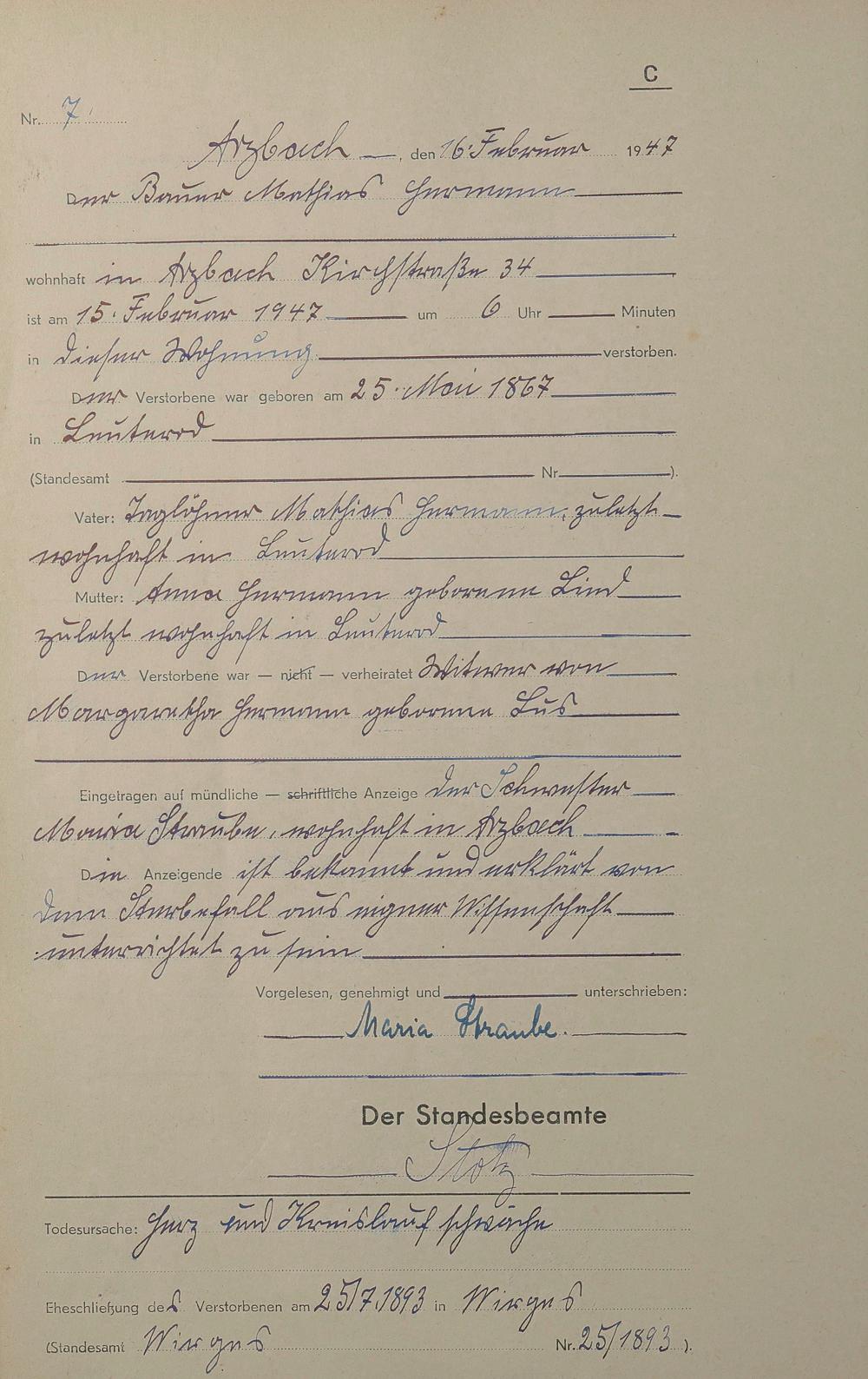 Sterberegister 1947