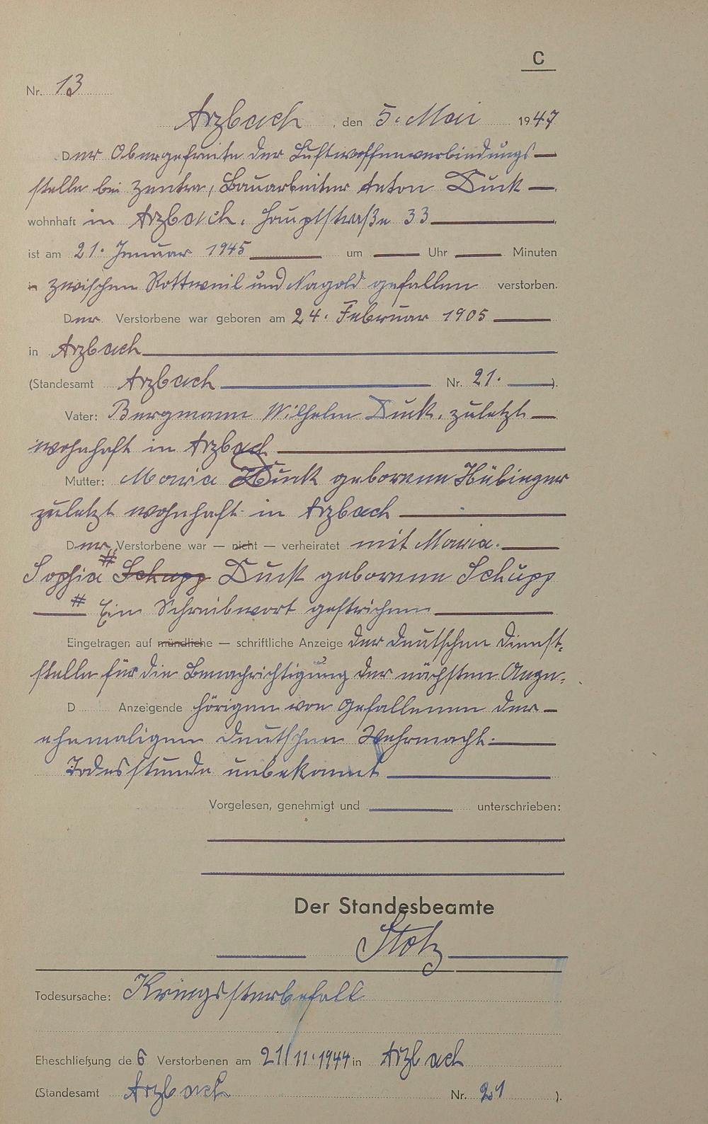 Sterberegister 1947