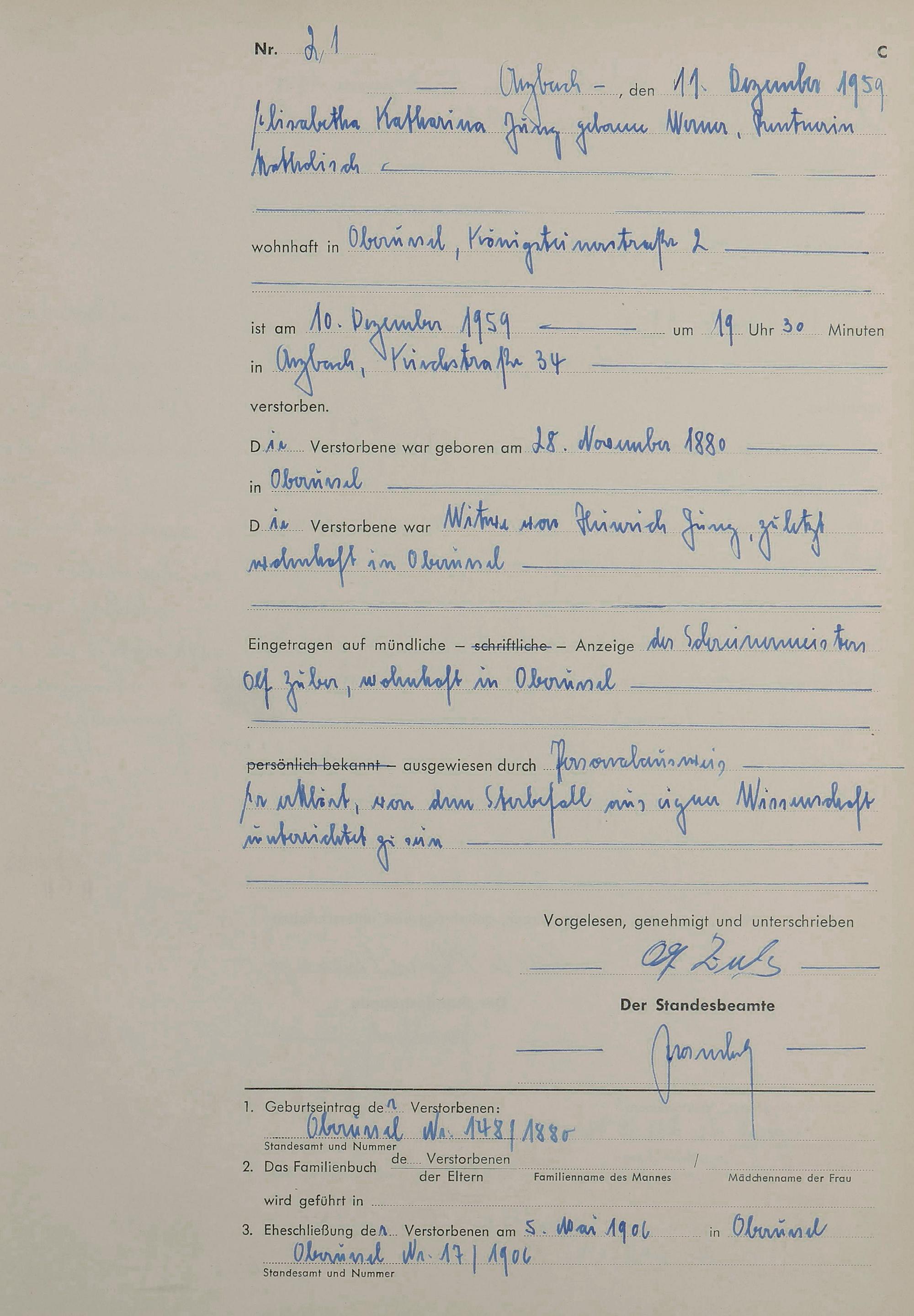 Sterberegister 1959