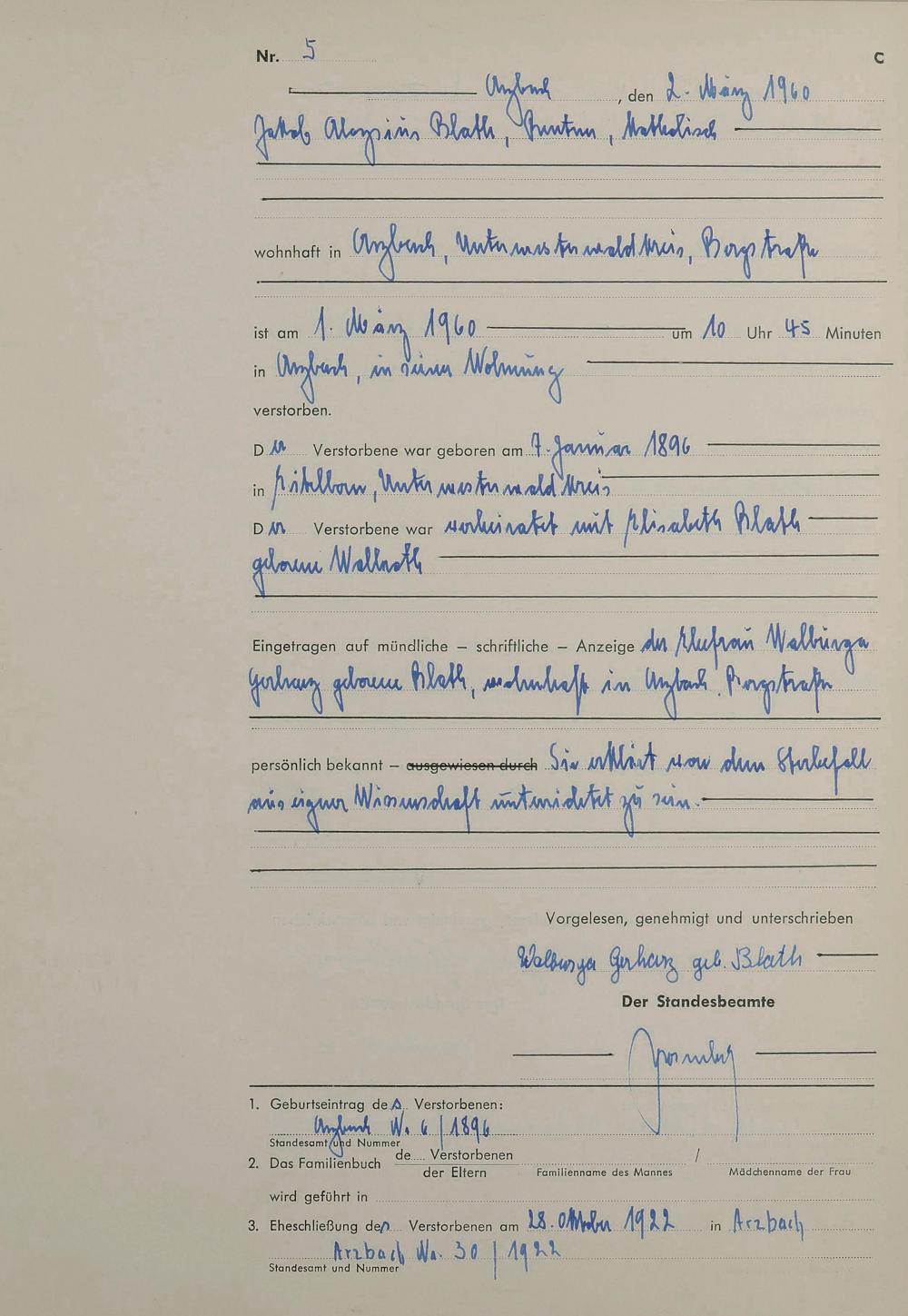 Sterberegister 1960
