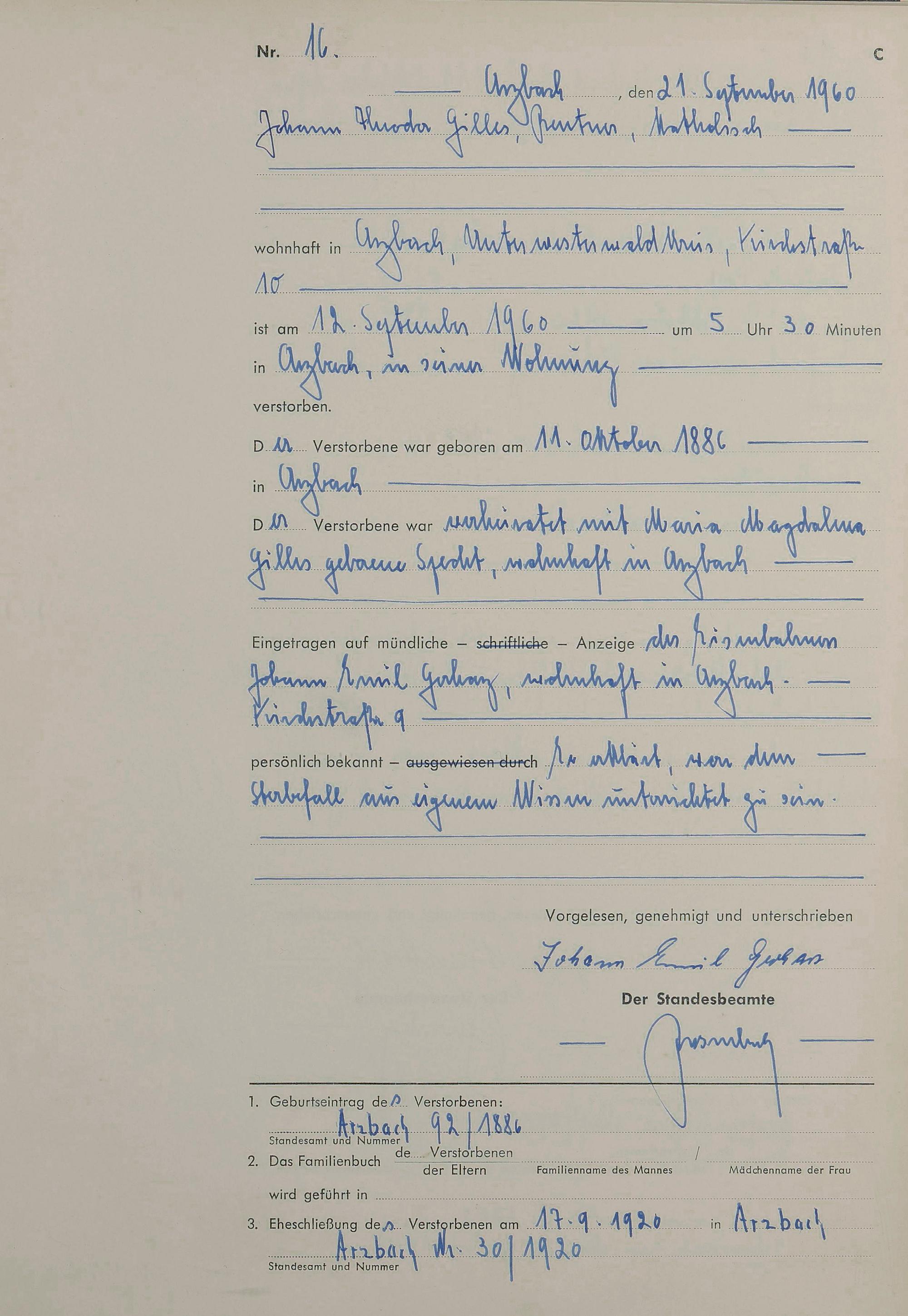 Sterberegister 1960