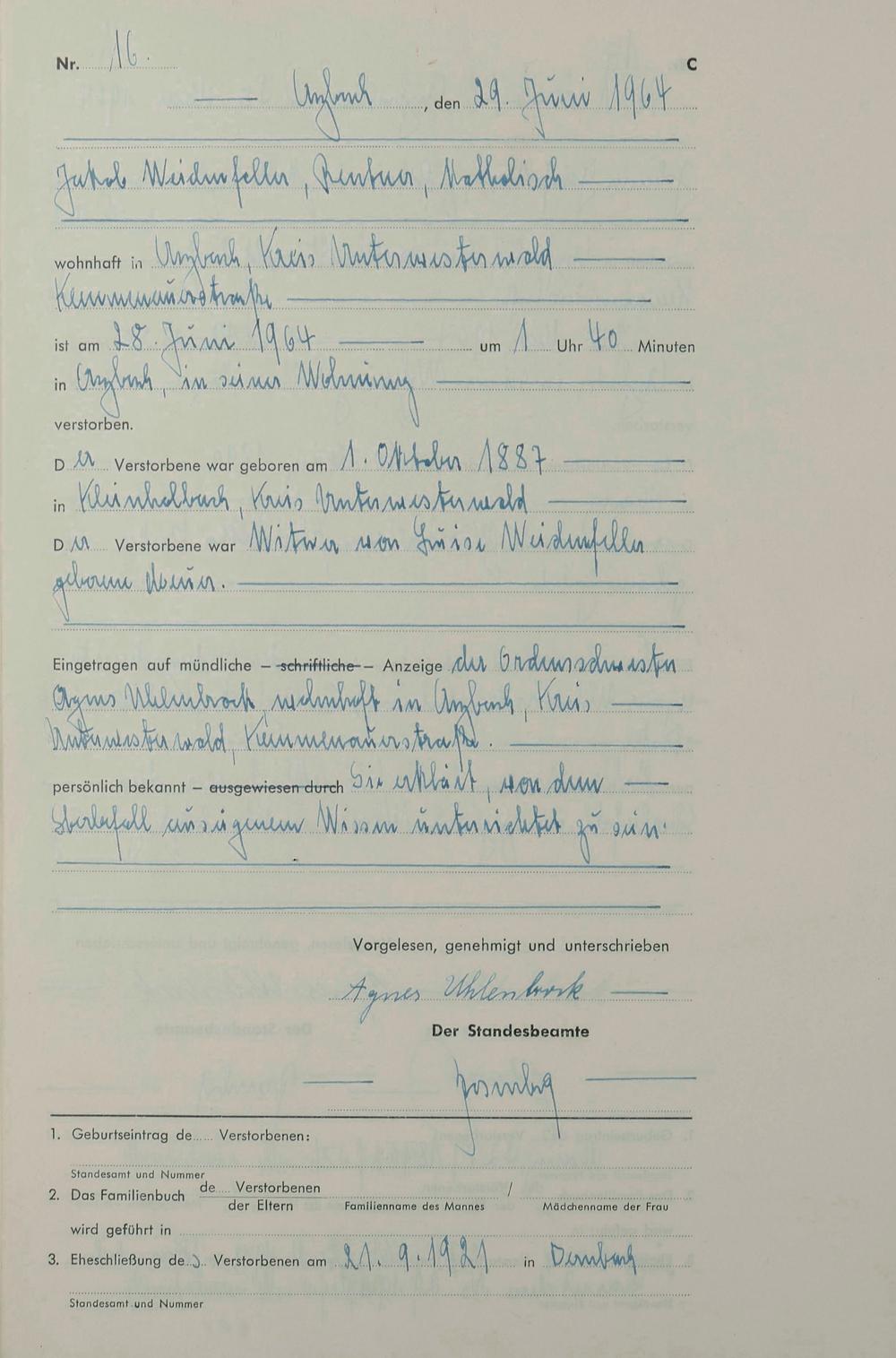 170/03: Sterberegister 1964