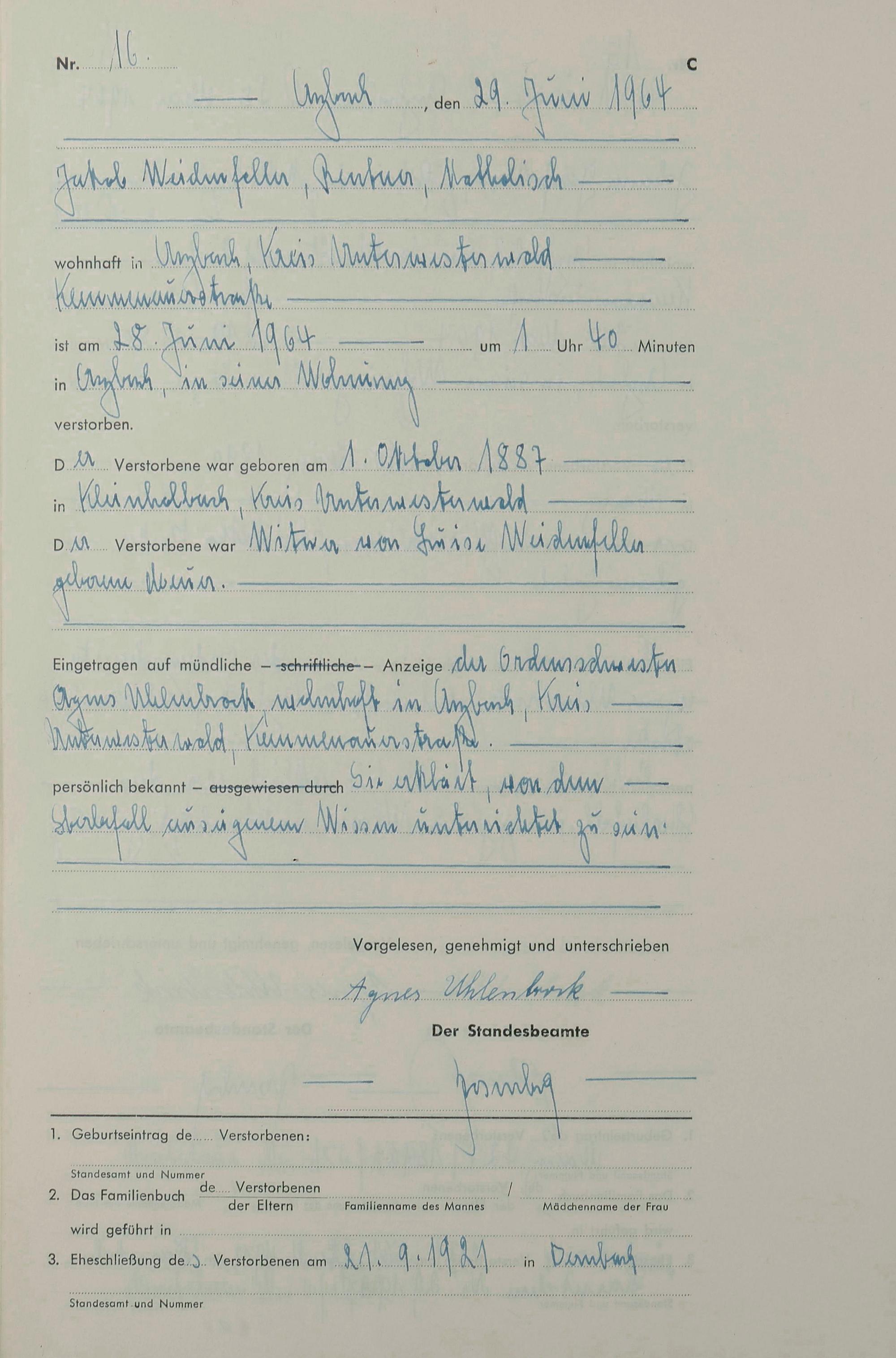 Sterberegister 1964