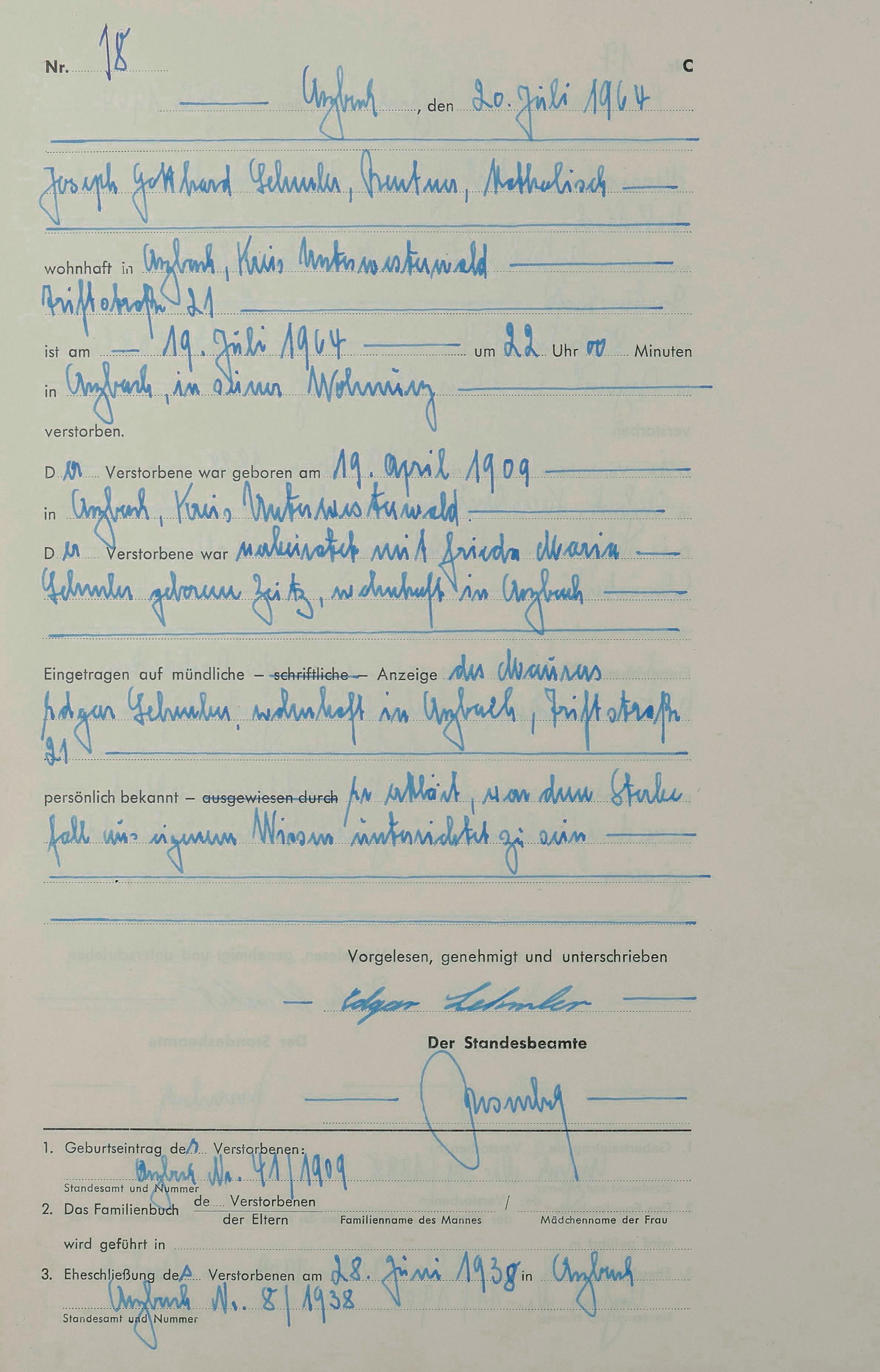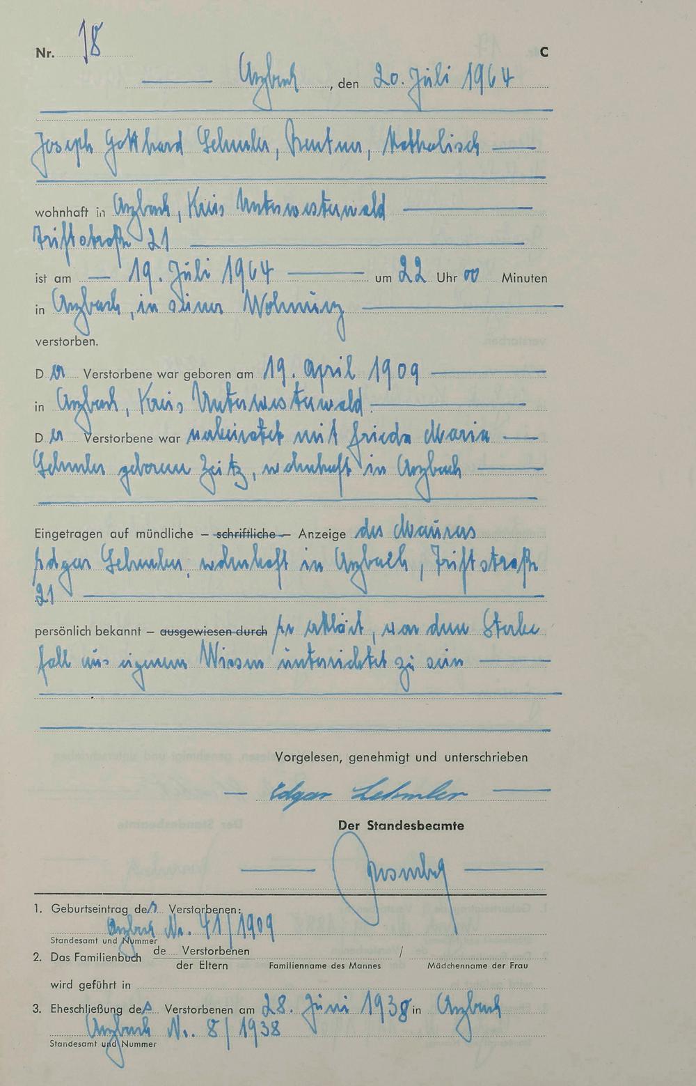 170/03: Sterberegister 1964