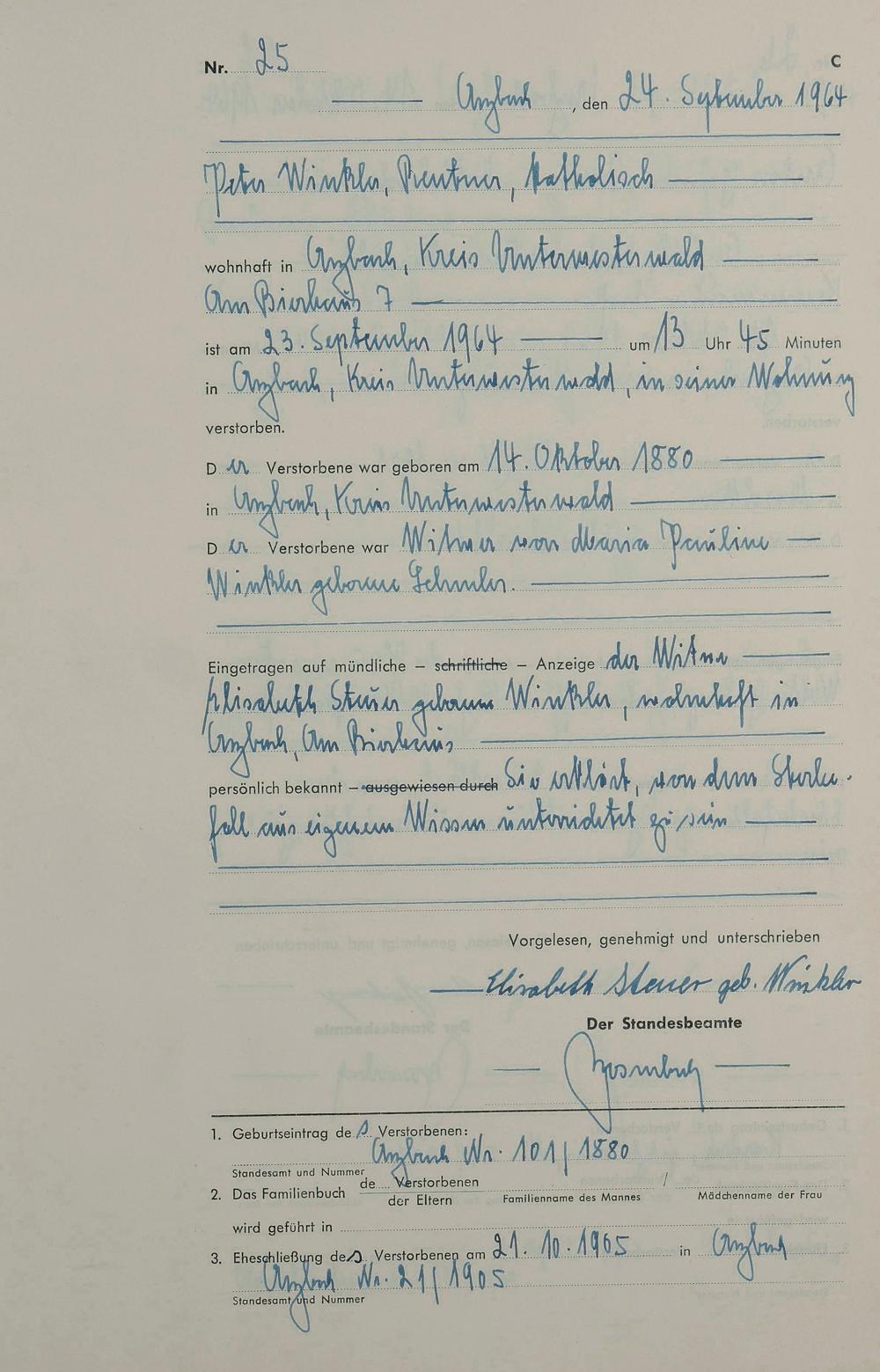 170/03: Sterberegister 1964