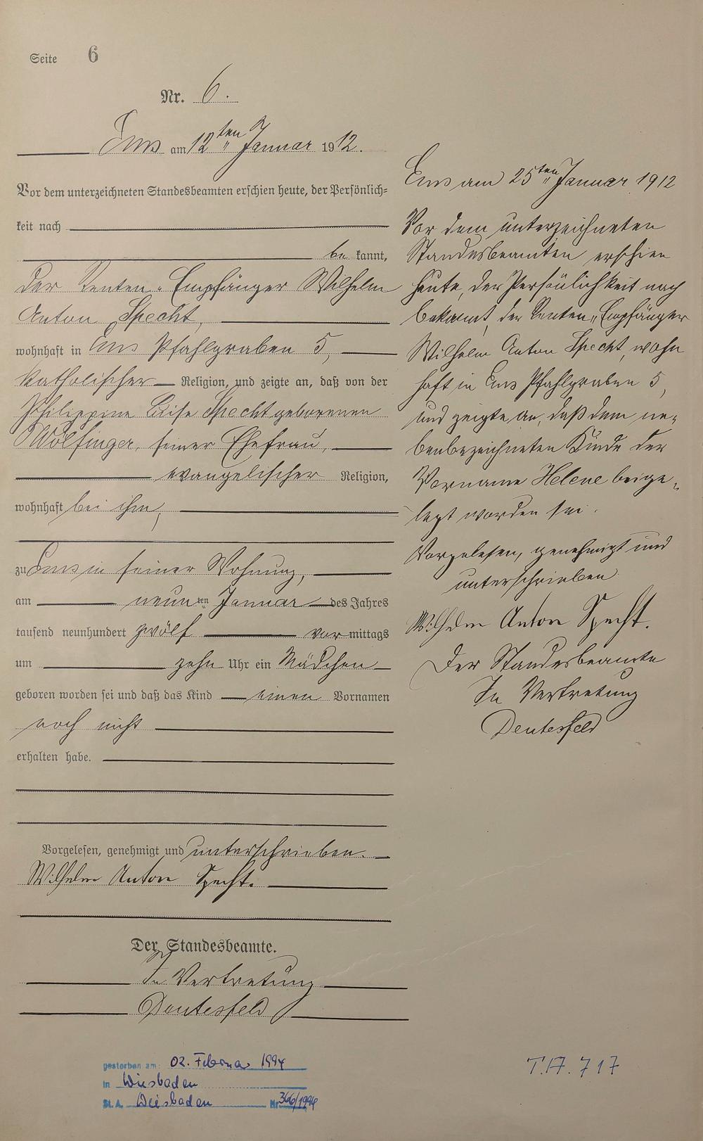 Geburtsregister 1912