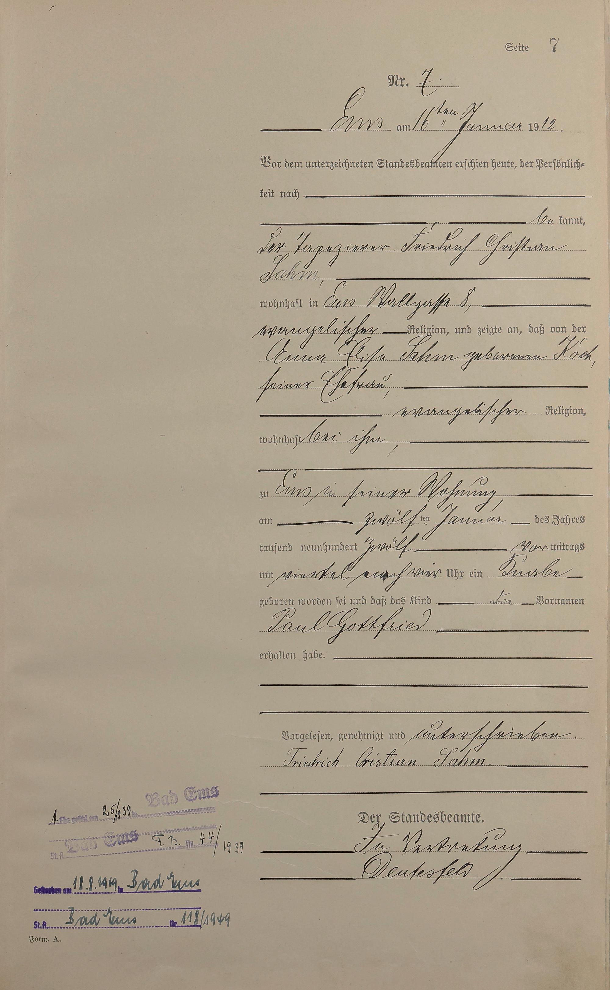 Geburtsregister 1912