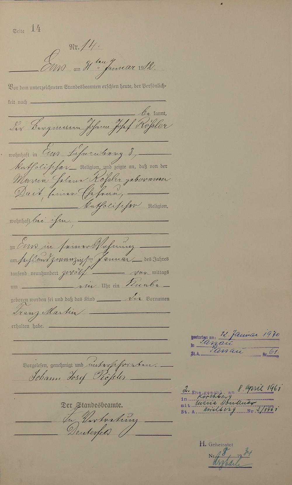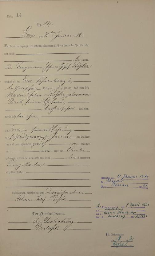 Geburtsregister 1912