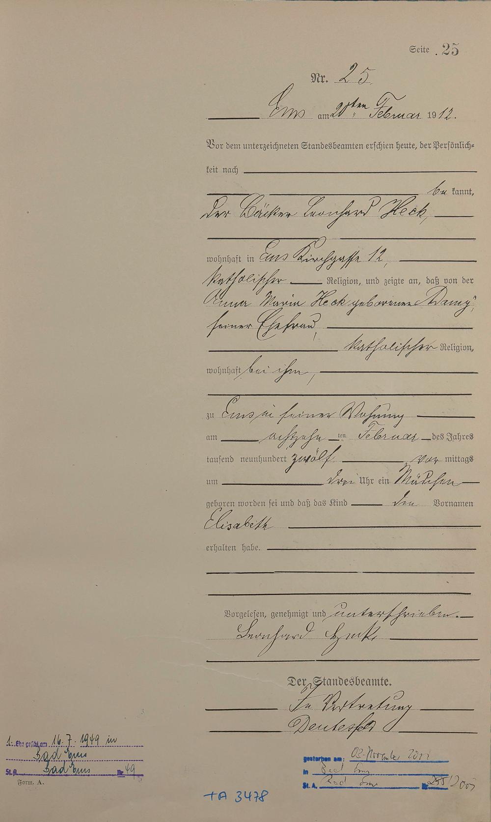 Geburtsregister 1912