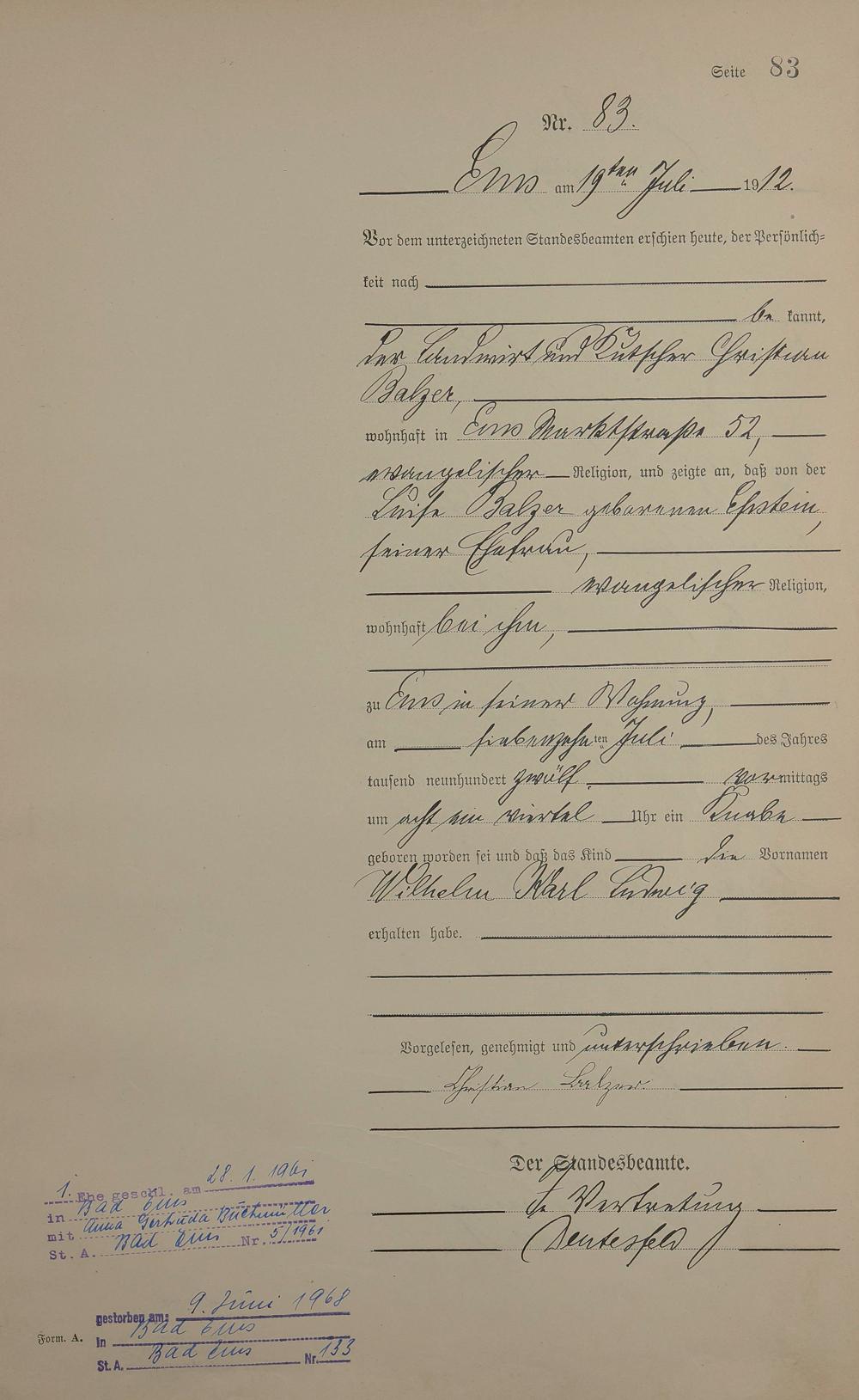 Geburtsregister 1912