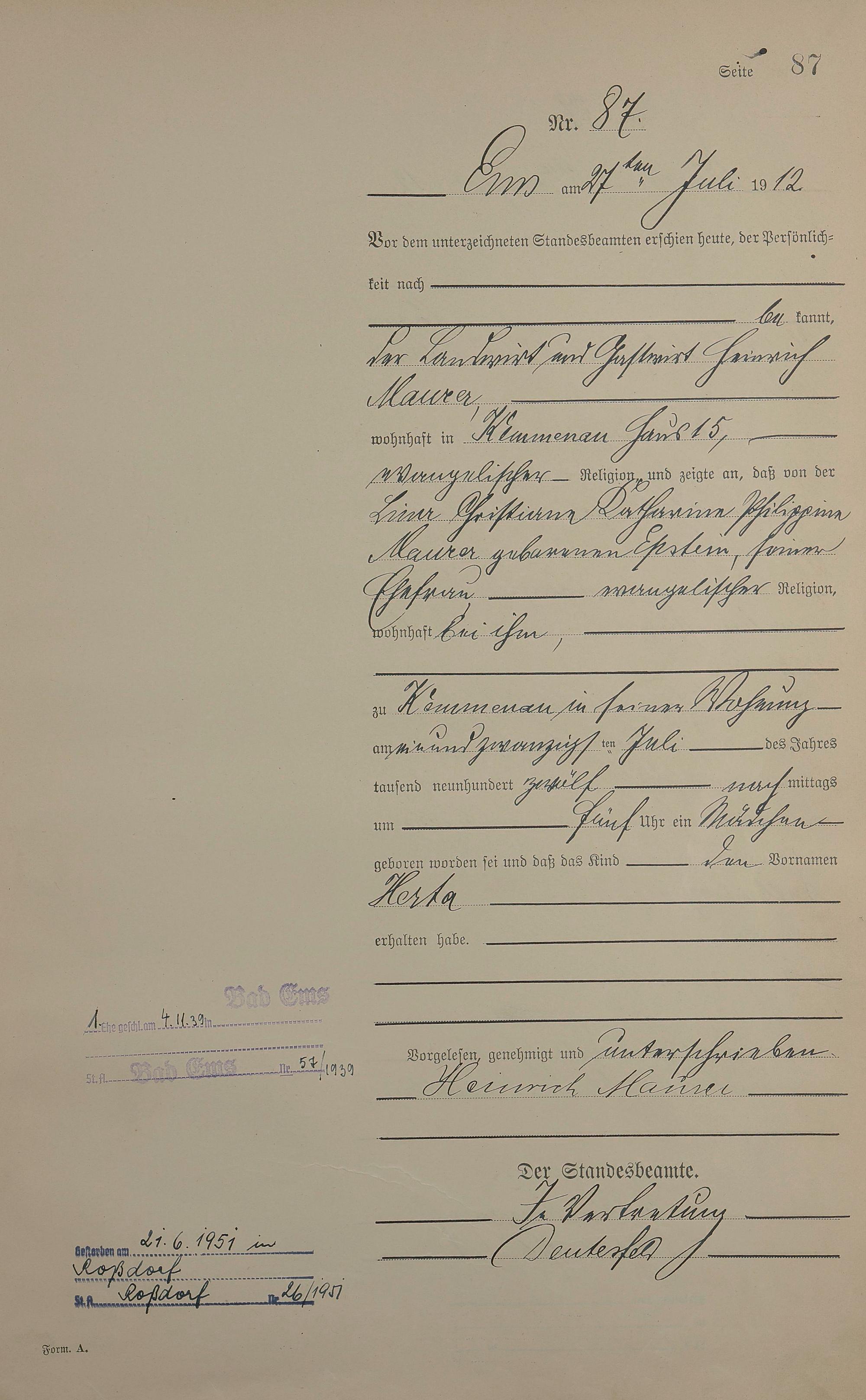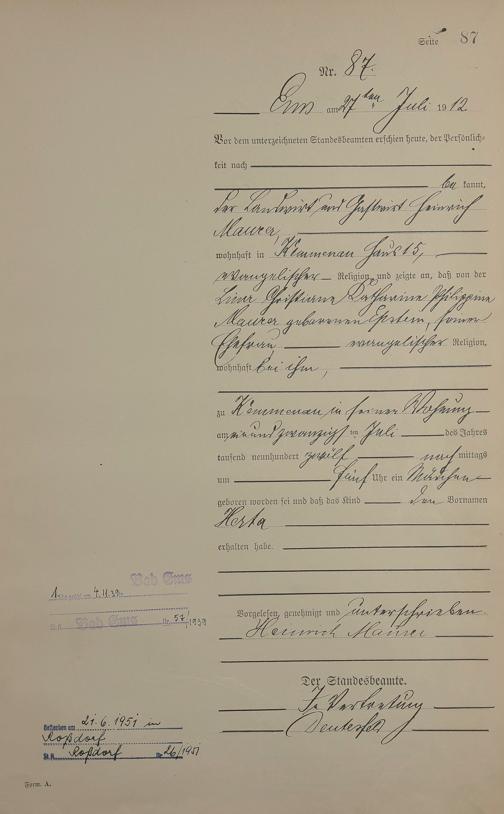 Geburtsregister 1912