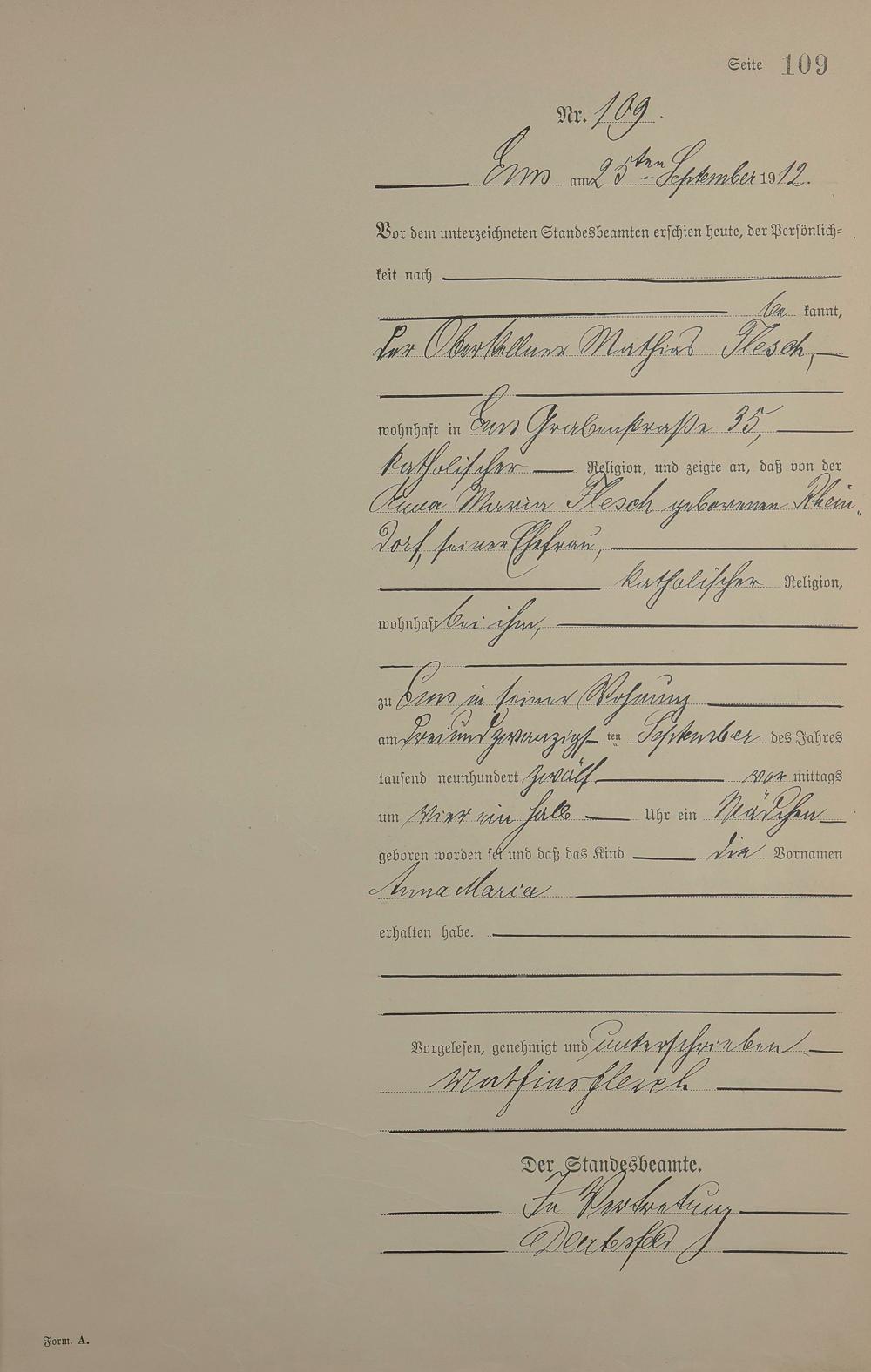 Geburtsregister 1912