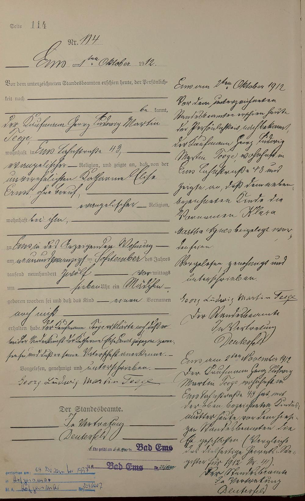 Geburtsregister 1912