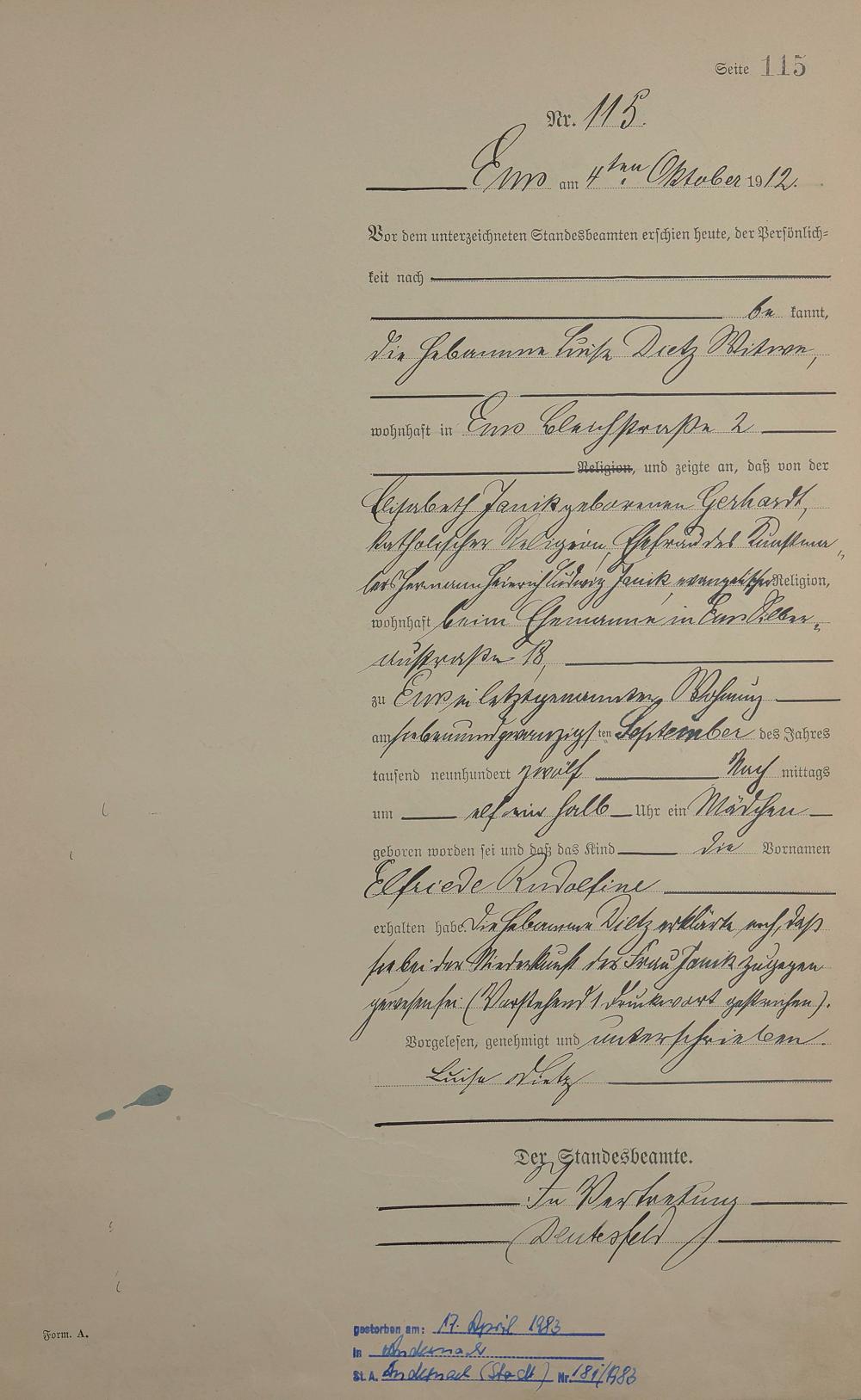 Geburtsregister 1912