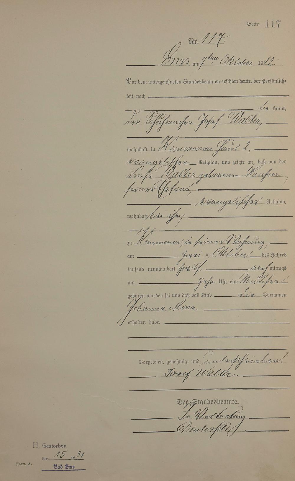Geburtsregister 1912
