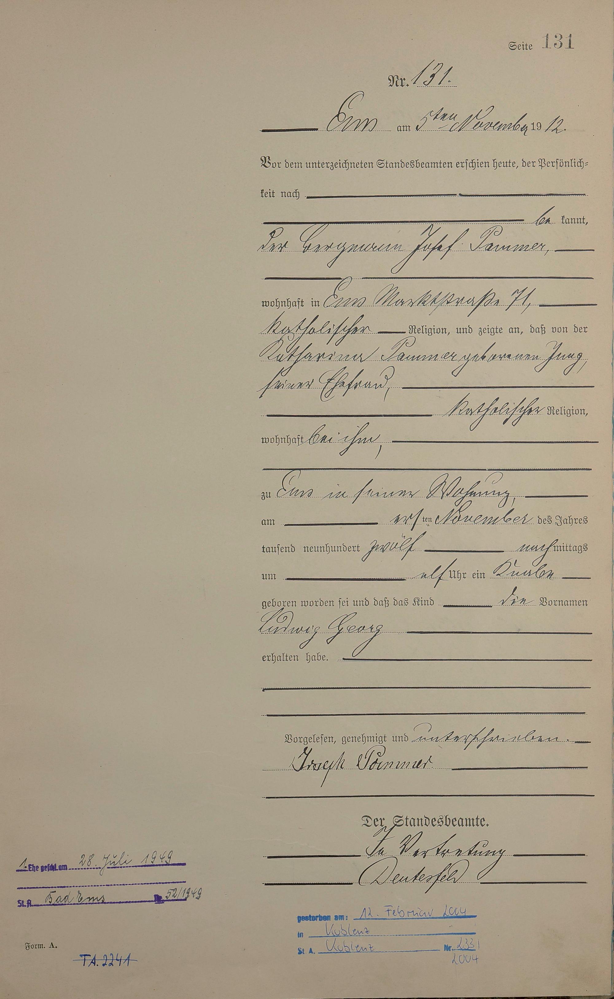 Geburtsregister 1912