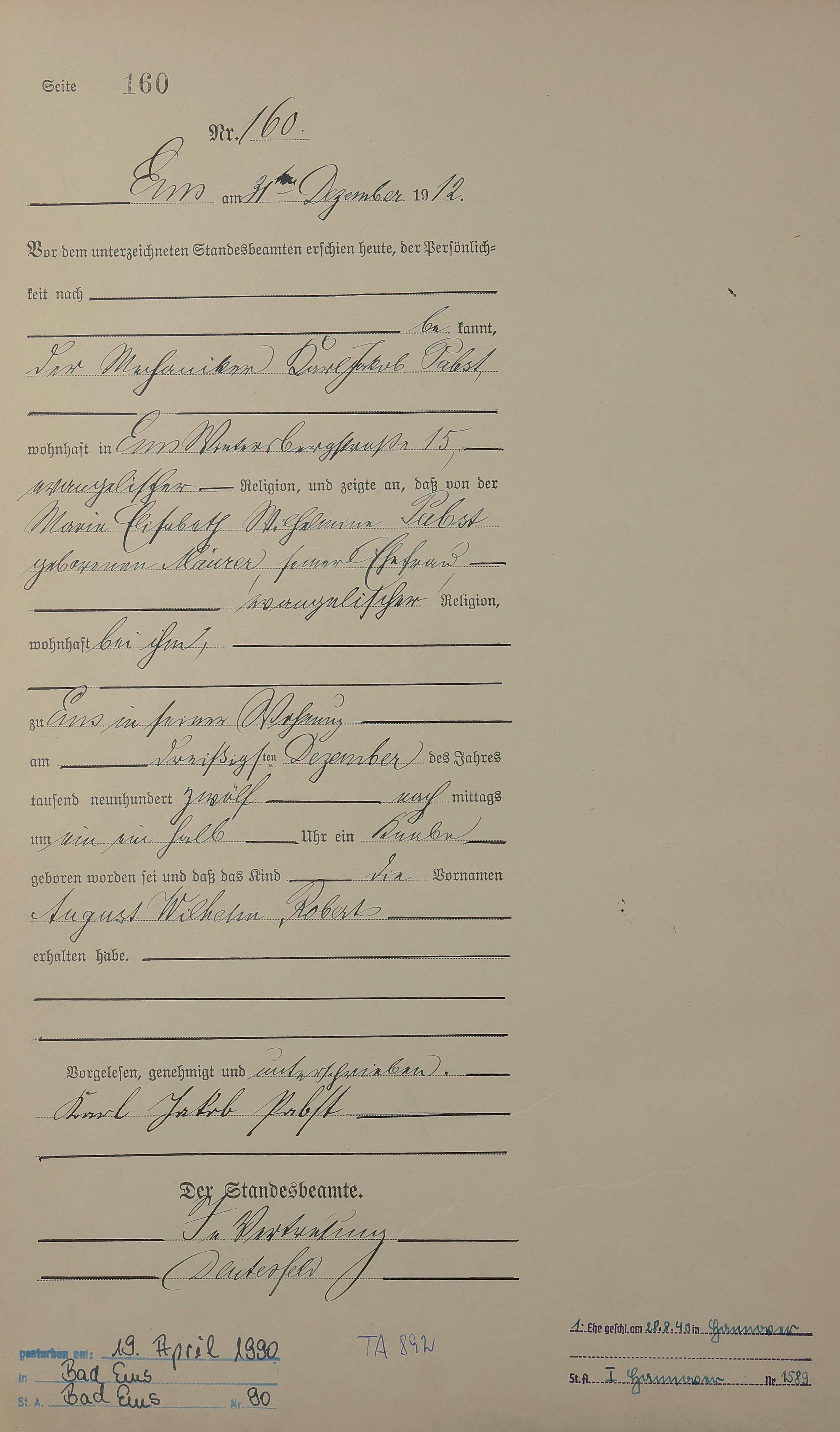 Geburtsregister 1912