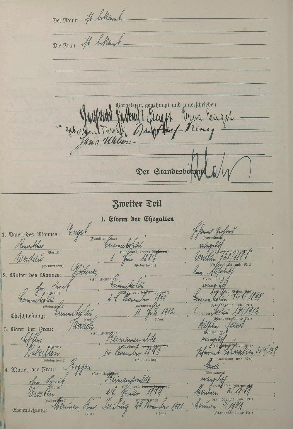 Heiratsregister 1942