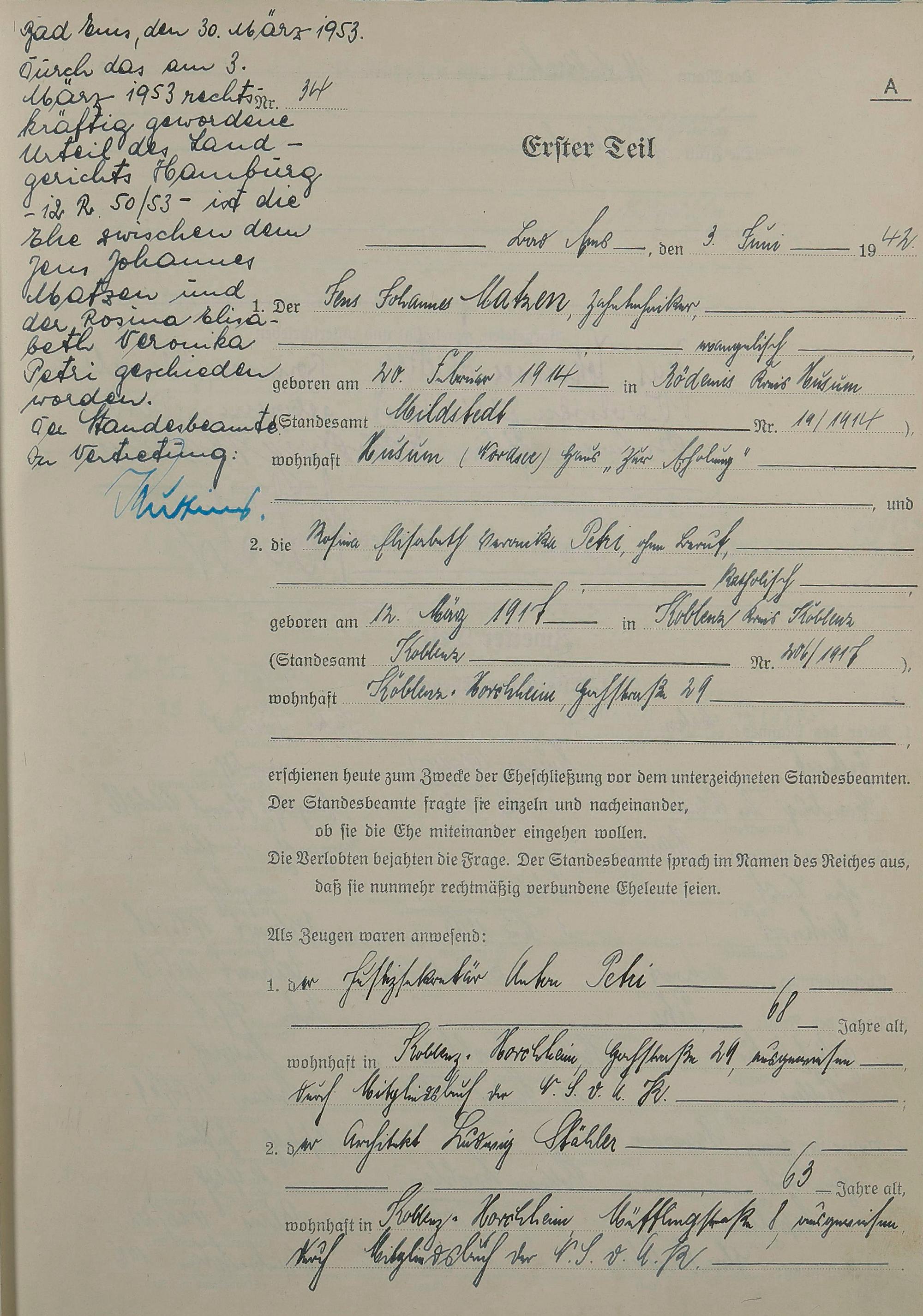 1418: Heiratsregister 1942