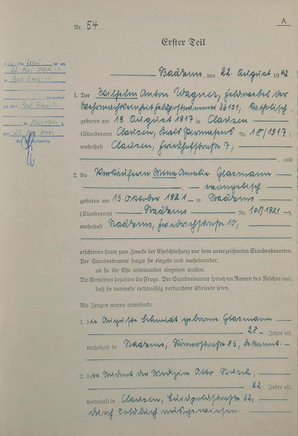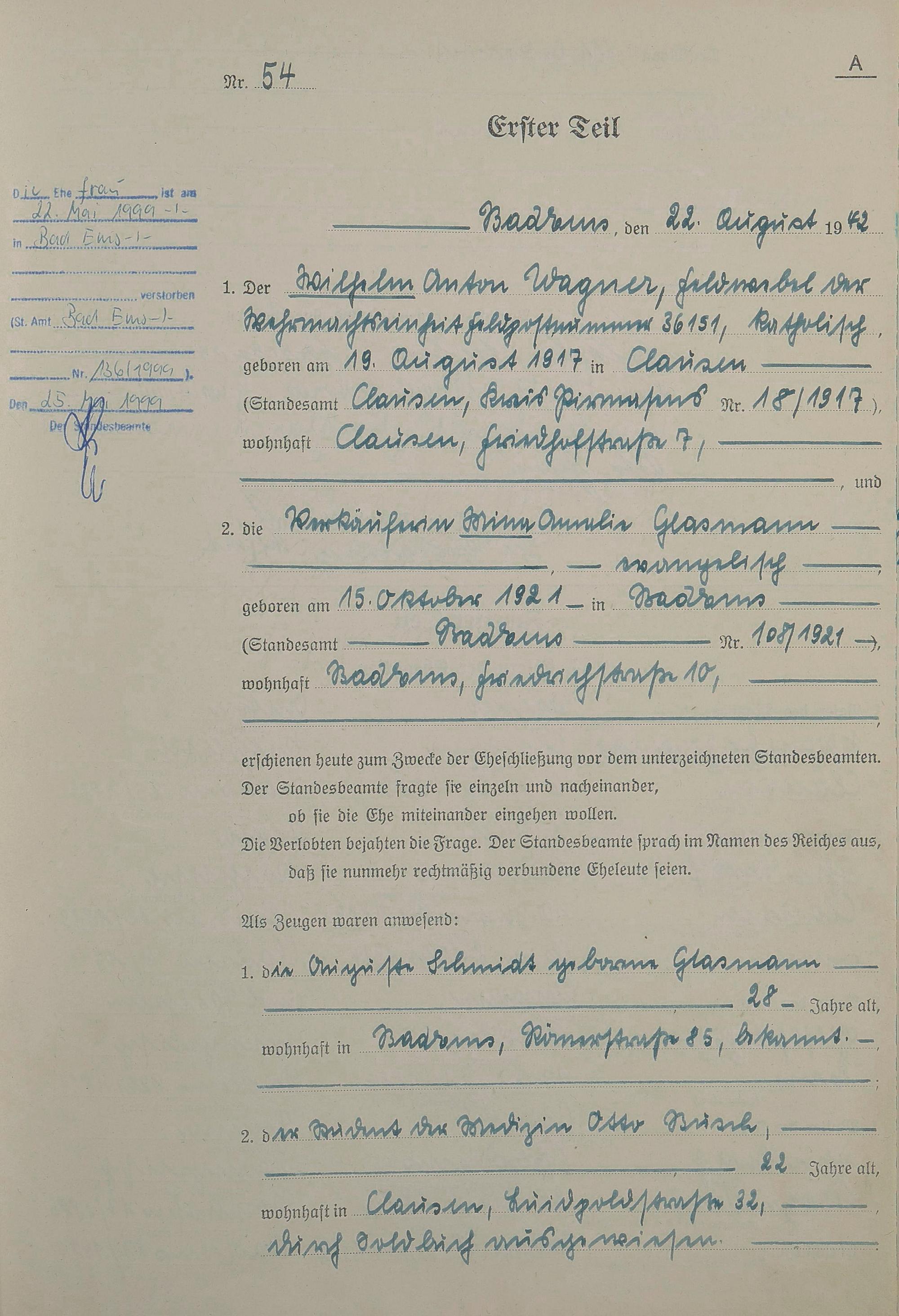 Heiratsregister 1942