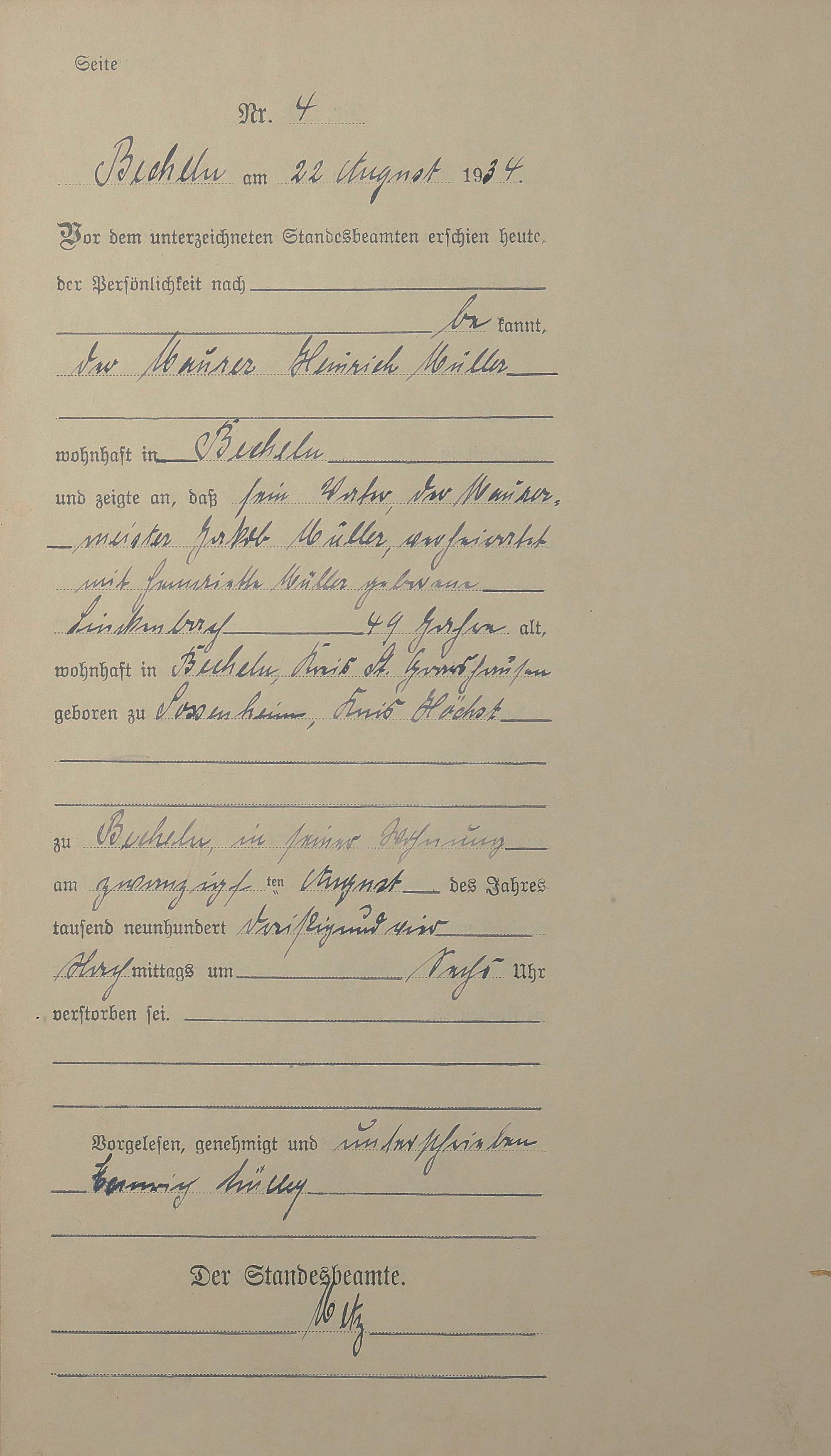 Sterberegister 1934