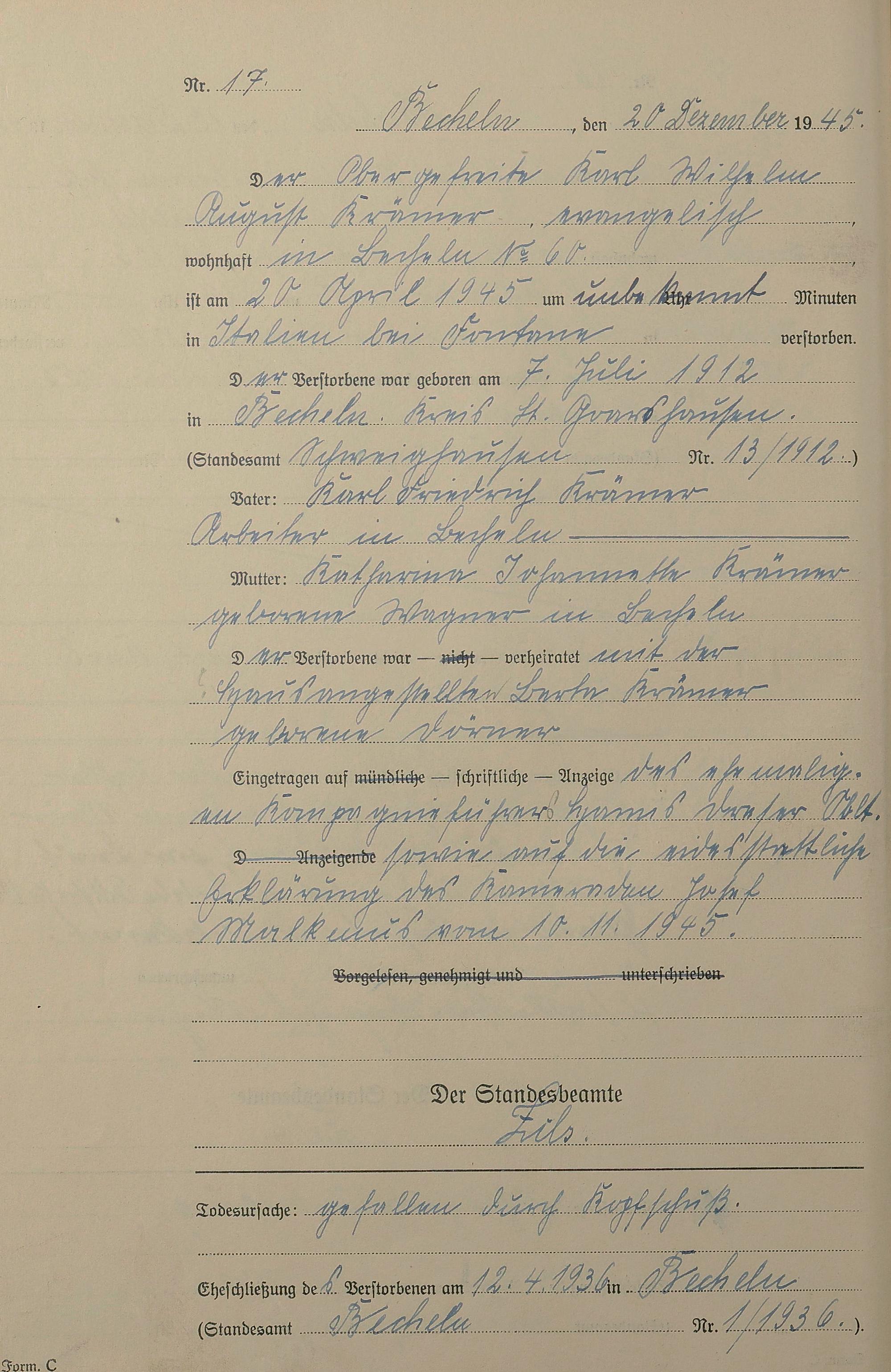 Sterberegister 1945